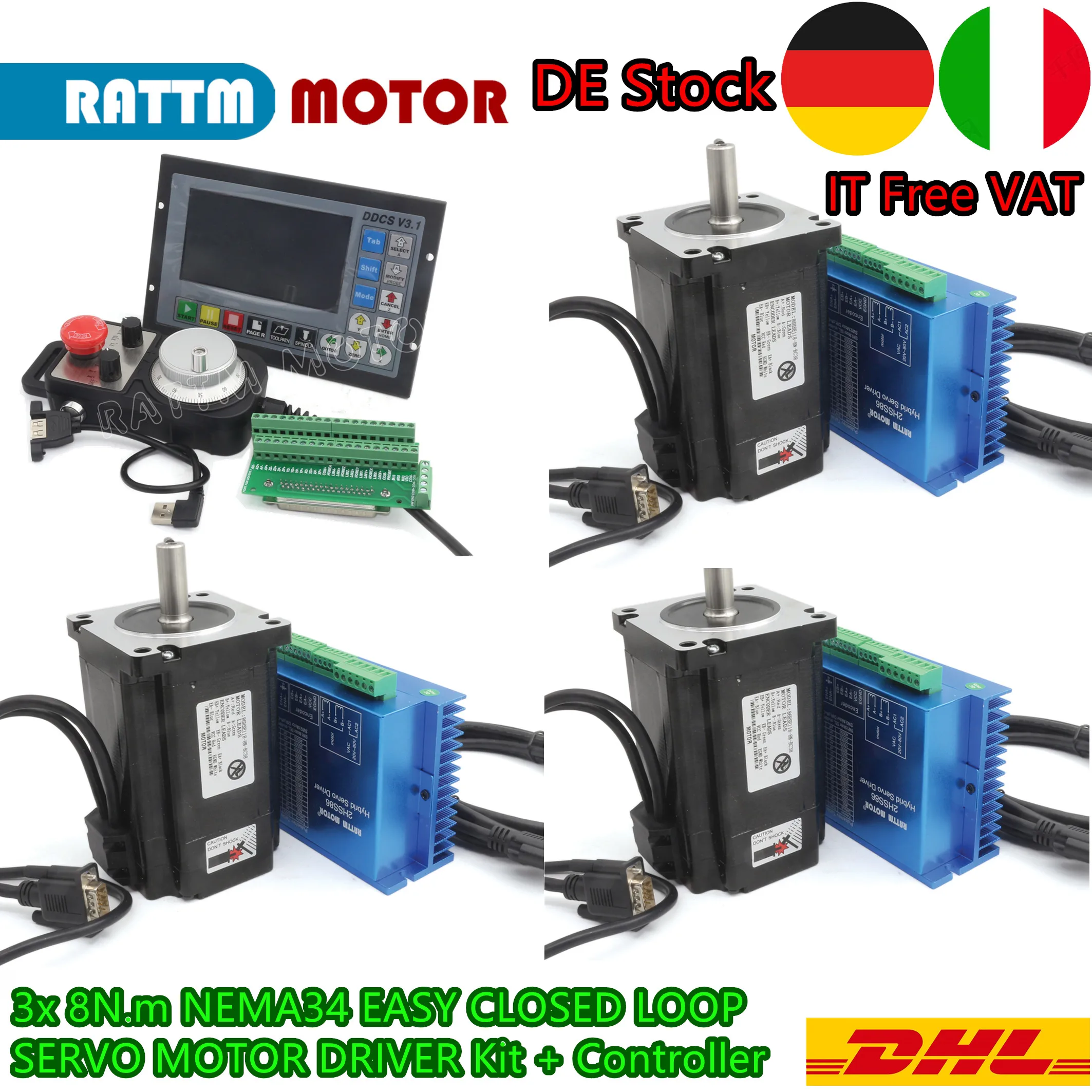 3 x 86HSE8N замкнутый цикл Серводвигатель (8N.m, 116 мм длина, 6A)