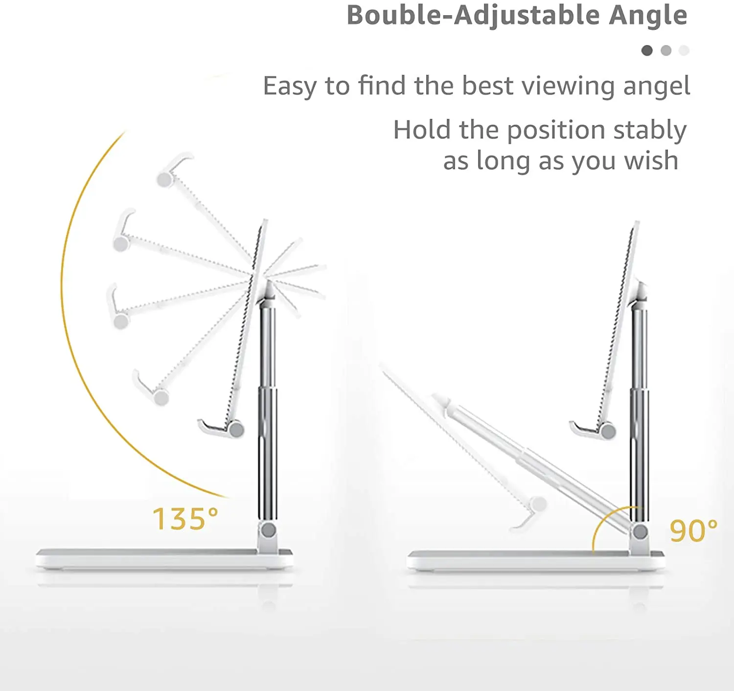 【 Регулировка угла обзора и высоты этот регулируемый держатель для планшета можно просто отрегулировать высоту и угол обзора в соответствии с вашими потребностями. Высота регулируется от 12 - 17 см/4,7 " - 9", горизонтальный 5 ° - 135 ° регулируемый угол. Вы можете найти наиболее удобный угол обзора.