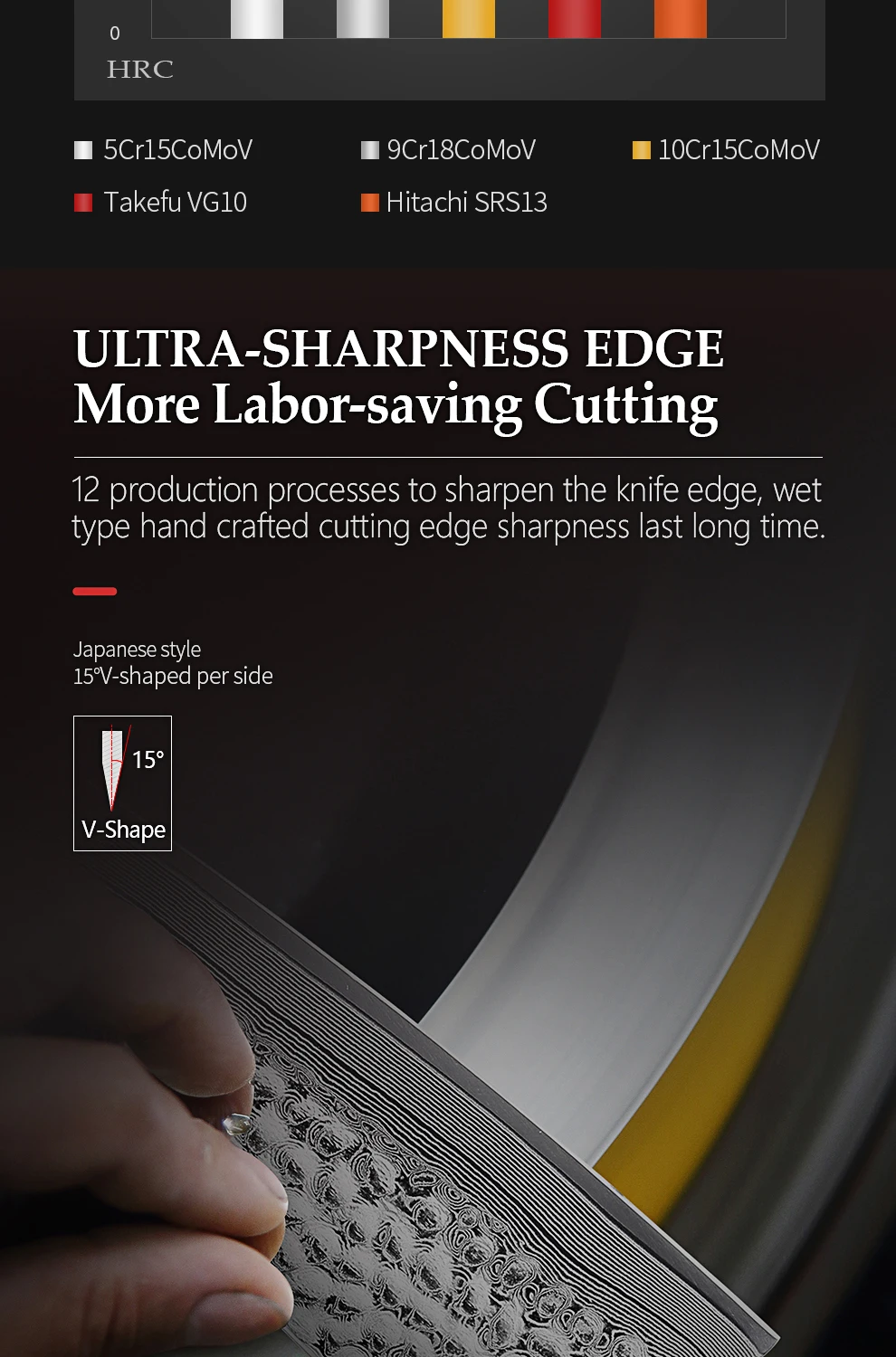 Материал лезвия:Япония 49 слоев SRS13 Дамасская сталь