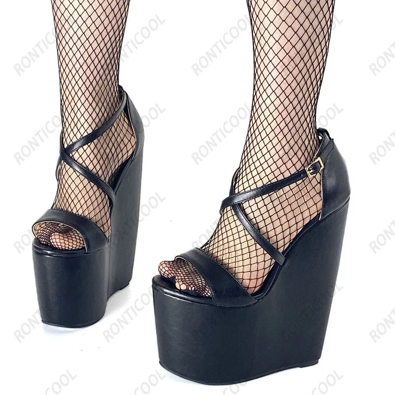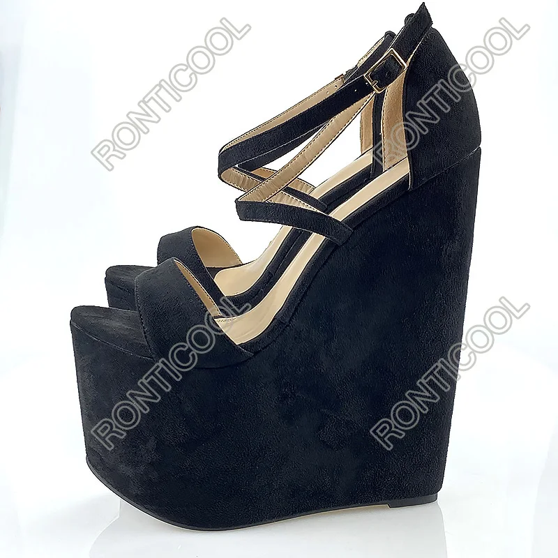 Ronticool/женские босоножки ручной работы на платформе 10 см; Вечерние туфли на танкетке 20 см с открытым носком; Цвет черный, бежевый, оранжевый; Женская обувь; Американские размеры 5-13