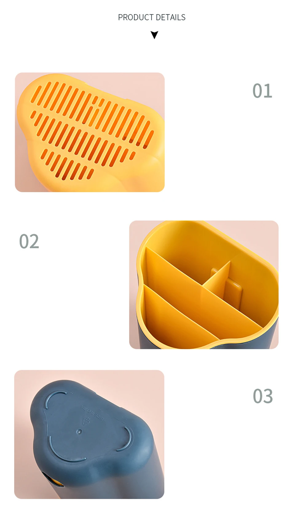 1.Selected PP material, thick and durable, compact and practical. 2.Grid design, large open objects are readily available. 3.Double-layer design, drainage and water integration. 4.Multifunctional storage, more convenient to use.Specifications: