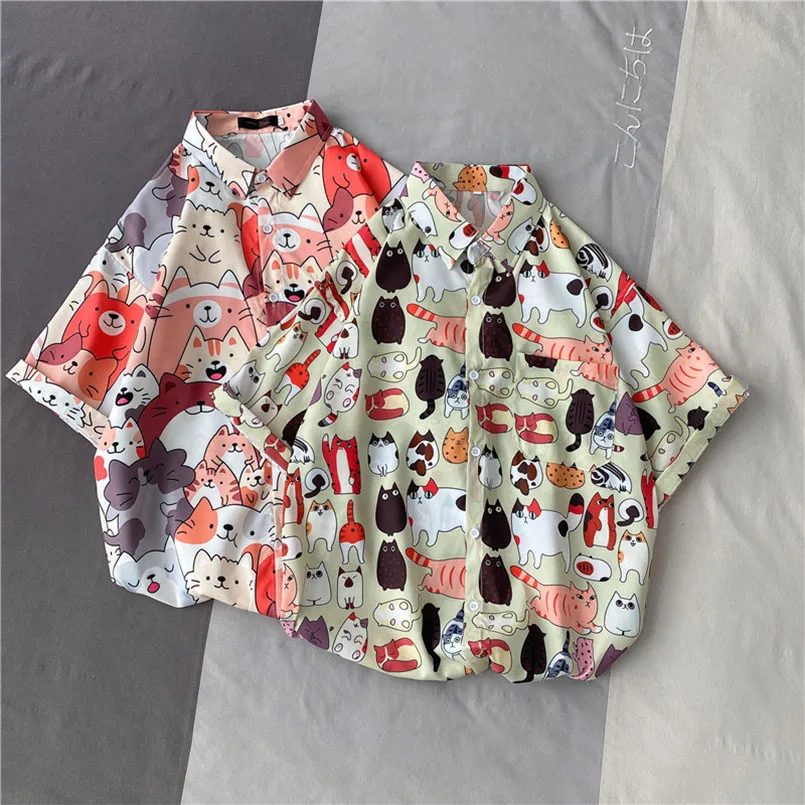 Летняя Повседневная рубашка с принтом для мужчин и женщин, Гавайские пляжные рубашки с коротким рукавом и рисунком из аниме, японский стиль, одежда больших размеров с цветочным рисунком