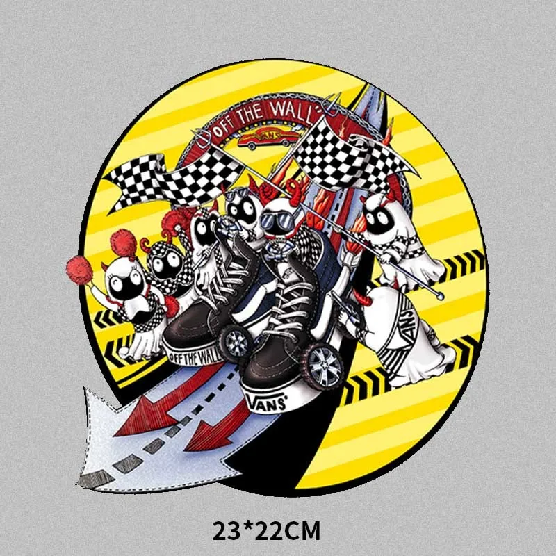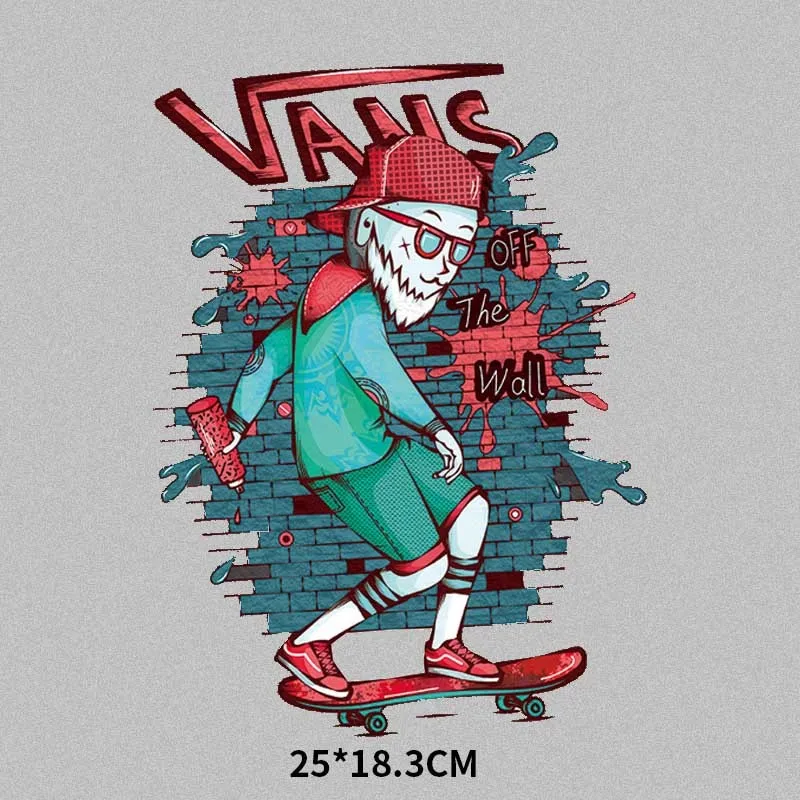 Панк Череп Скейтборд соревнование хип-хоп уличное искусство теплопередача печать на одежде крутая личность DIY Футболка стикер