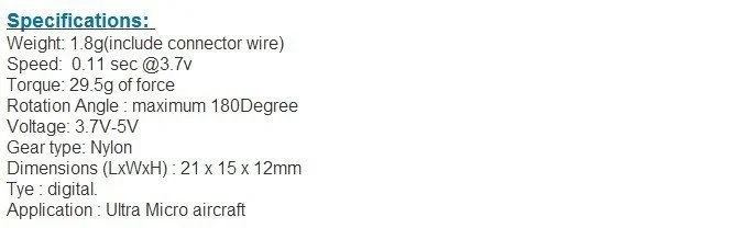 Package: 1.5g left servo x1pcs 1.5g right servo x1pcs