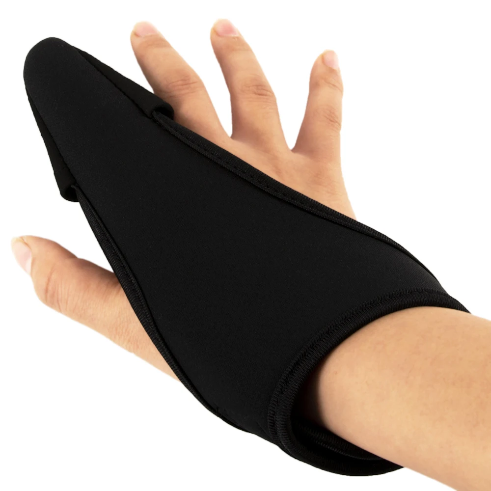 Можно носить на левой или правой руке, защищая указательный палец от боли.