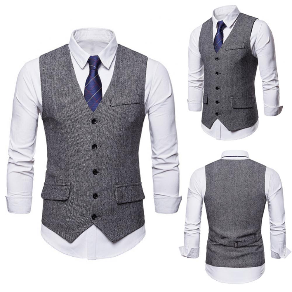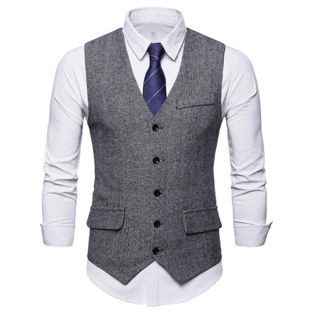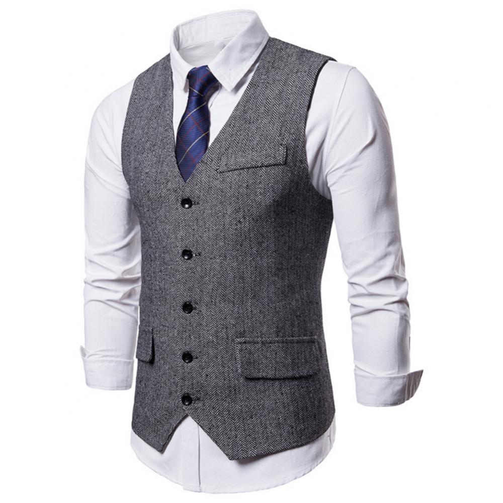 Жилет с узором «в елочку», однотонный цвет, легко сочетается с рубашками, костюмным комплектом и т. д.