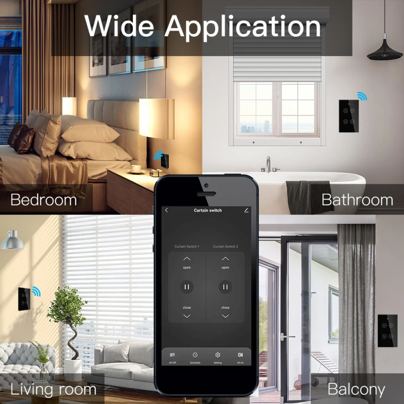 4. Подходит для различных видов штор, таких как оконные жалюзи/рольставни/жалюзи/рольставни. Установите умный переключатель штор во многих местах, таких как офис/кабинет/спальня/гостиная и т. д., даже Управляйте тентом во дворе.