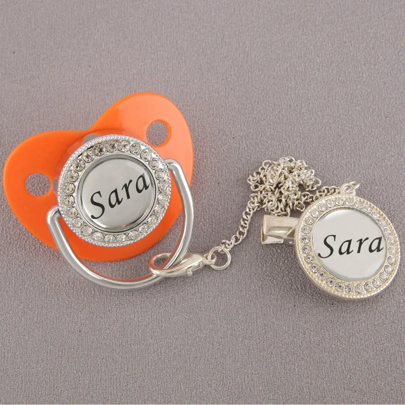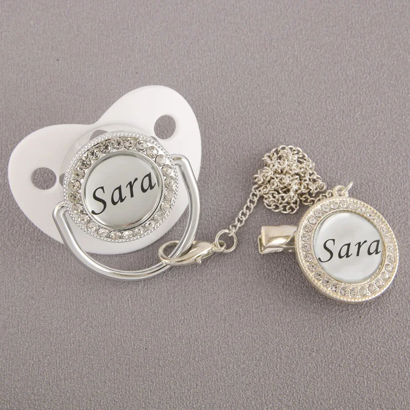 Персонализированное имя шикарная пустышка с зажимом Роскошная Серебряная детская пустышка BPA бесплатно Соска-пустышка детский душ подарок Sucette Chupeta