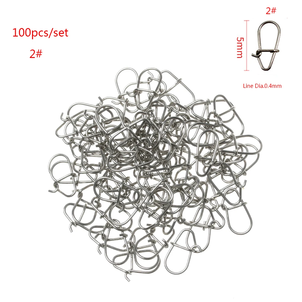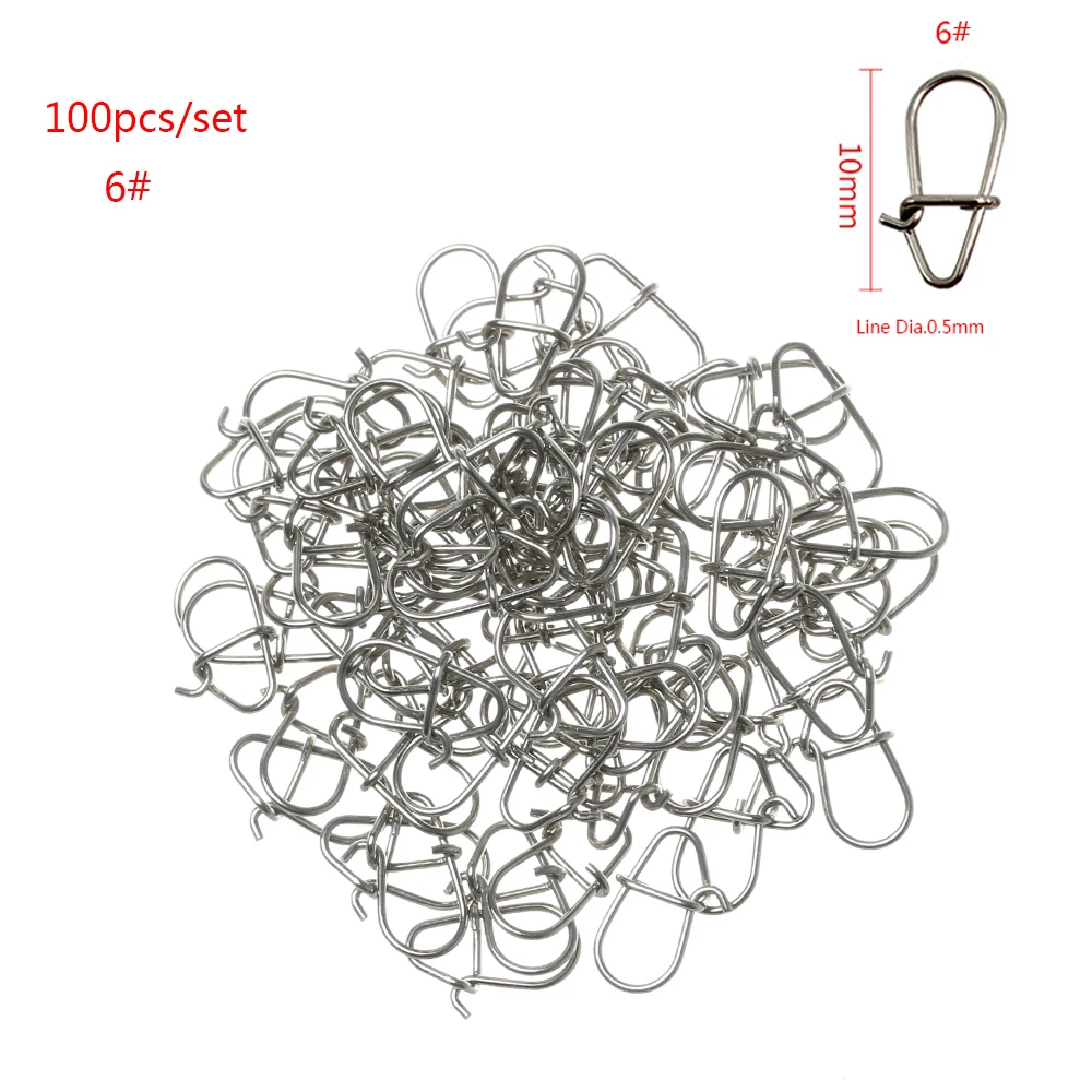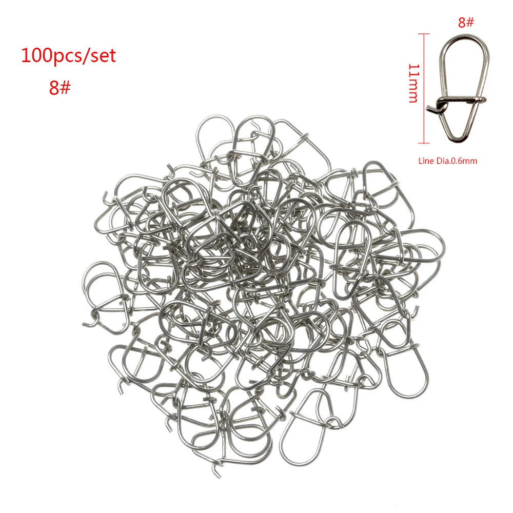 100 шт./лот из нержавеющей стали защелкивающаяся рыболовная баррель вертлюжные безопасные Защелки Крючки рыболовные снасти коробка Аксессуар инструмент приманки