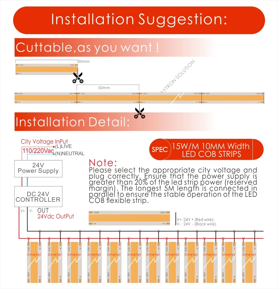 > Этот продукт может использоваться только 24V источника питания, ниже текущая операция, нижние нагревательные элементы; Он также может быть использован с алюминиевыми профилями для того чтобы обеспечить лучшие рассеивания тепла и более высокая яркость.