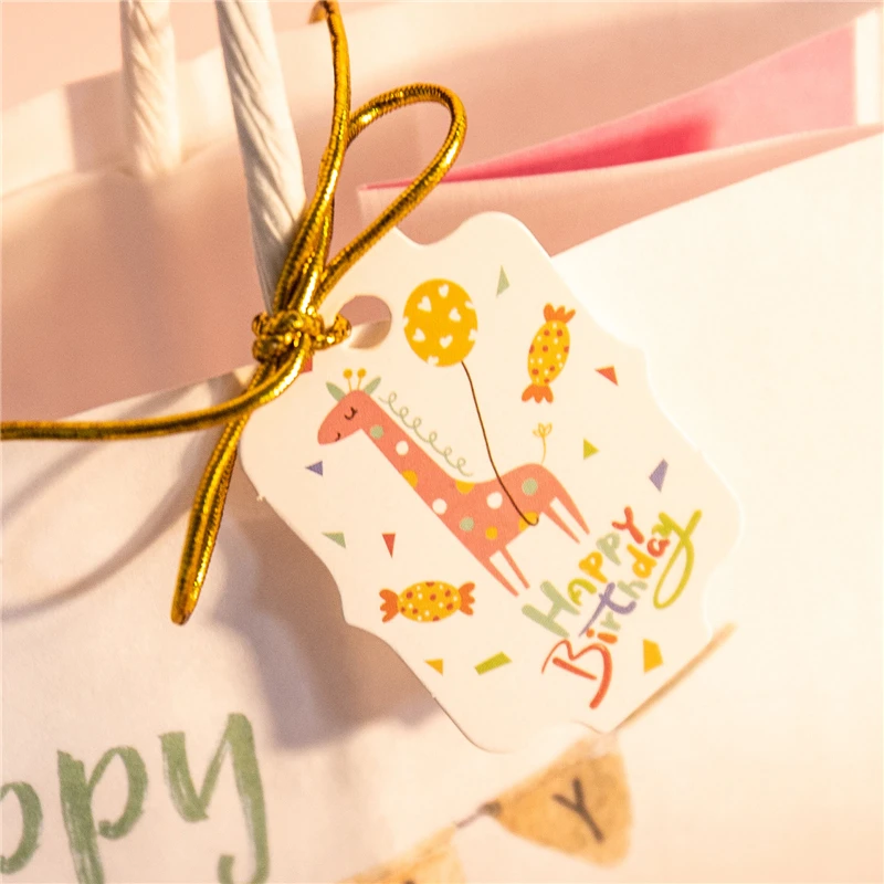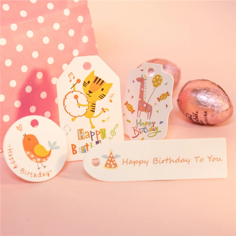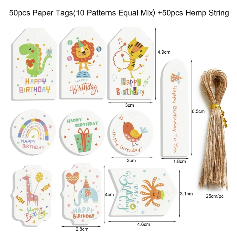 50Ses с днем рождения Подарочные бирки милый тигр лев Дино мультфильм животное Ассорти бирки с веревкой