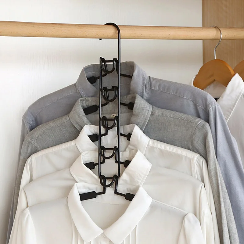 Каждая вешалка-органайзер может вмещать 5 рубашек или штанов, что позволяет экономить в 5 раз пространство гардероба и держать одежду аккуратной, она также подходит для подвешивания рубашки, куртки, футболки, пальто, брюки, свитера.