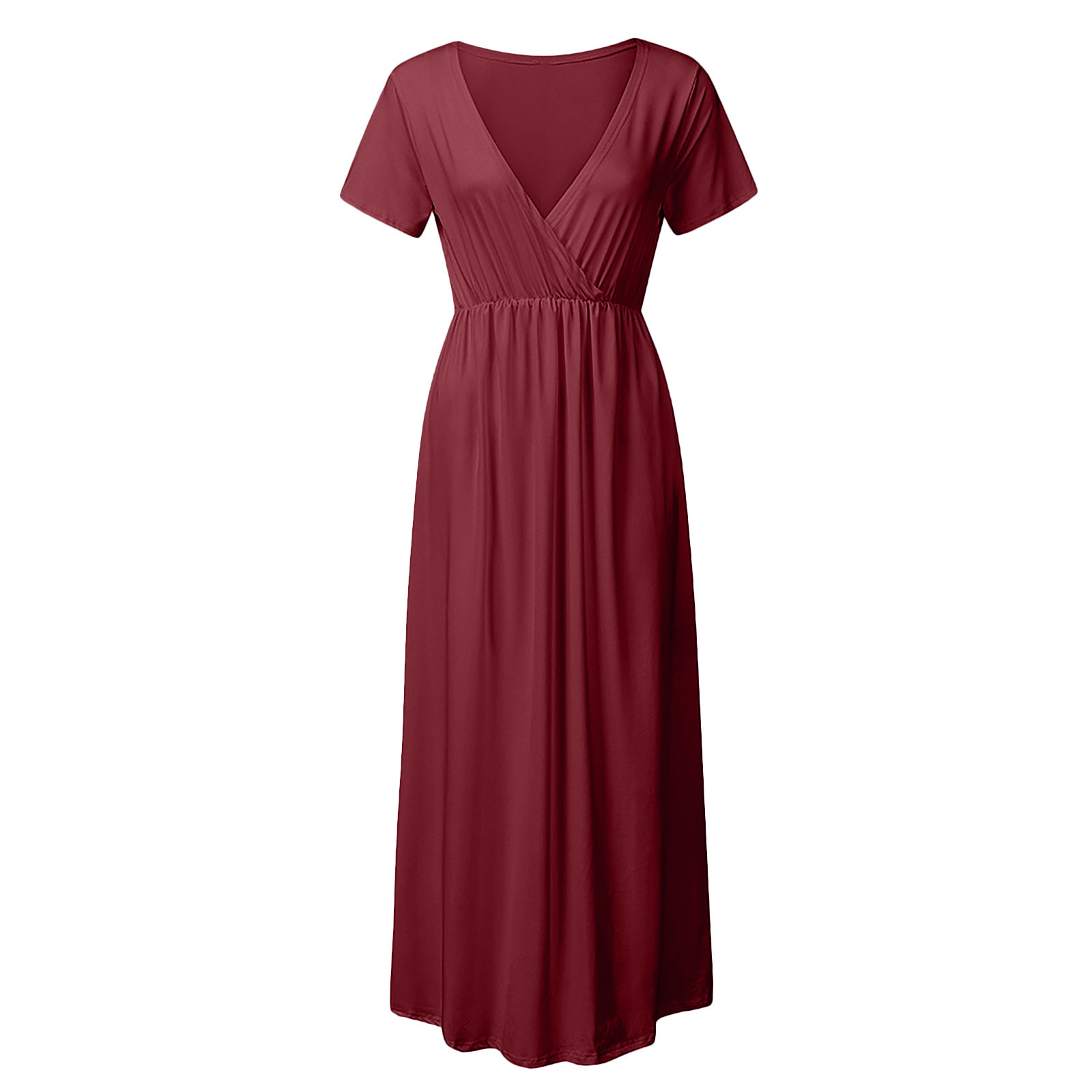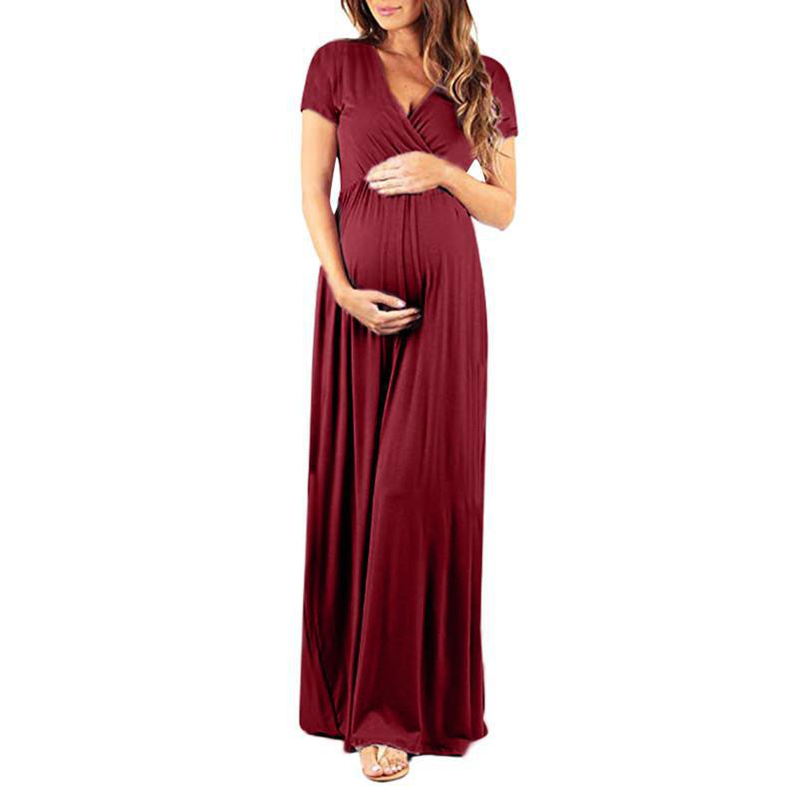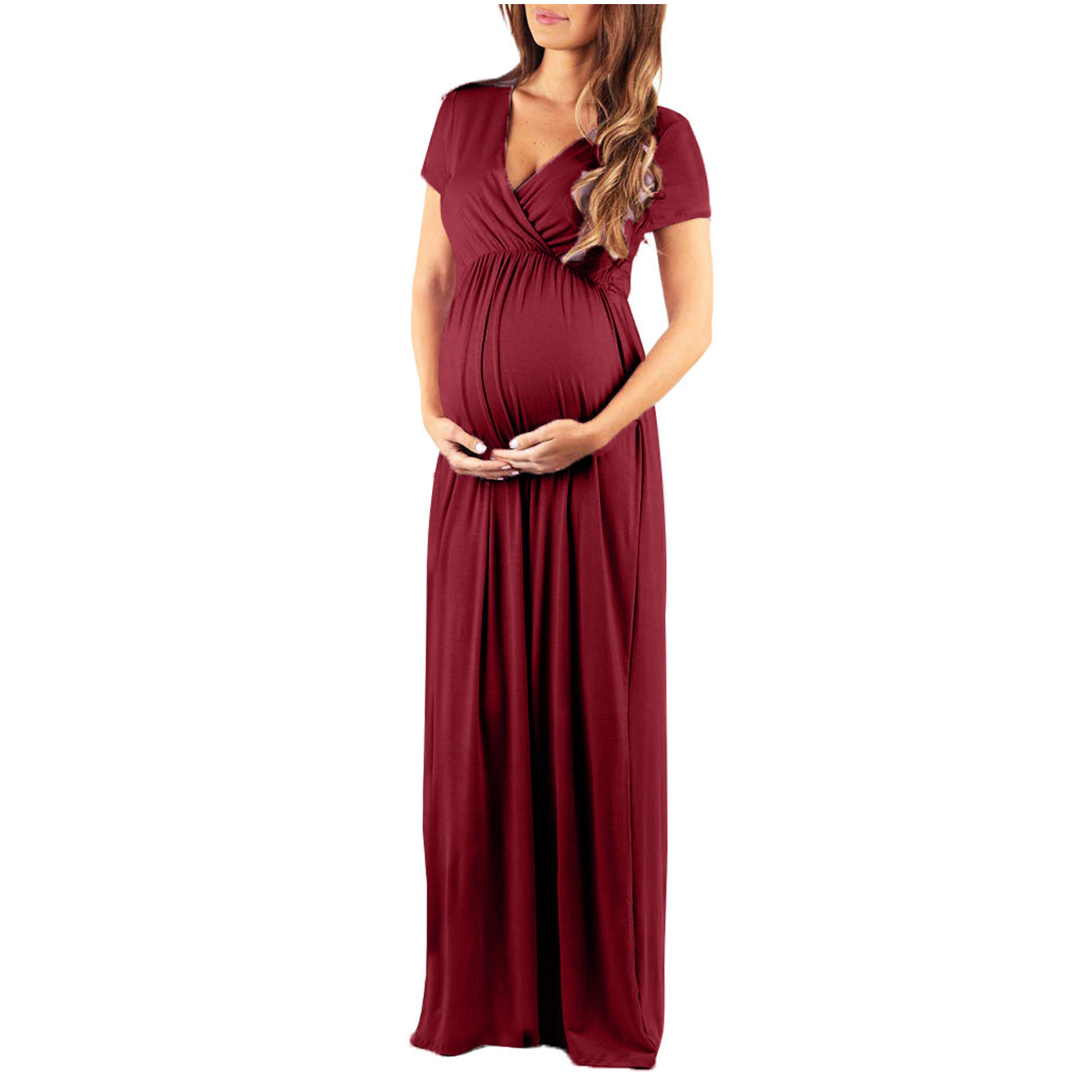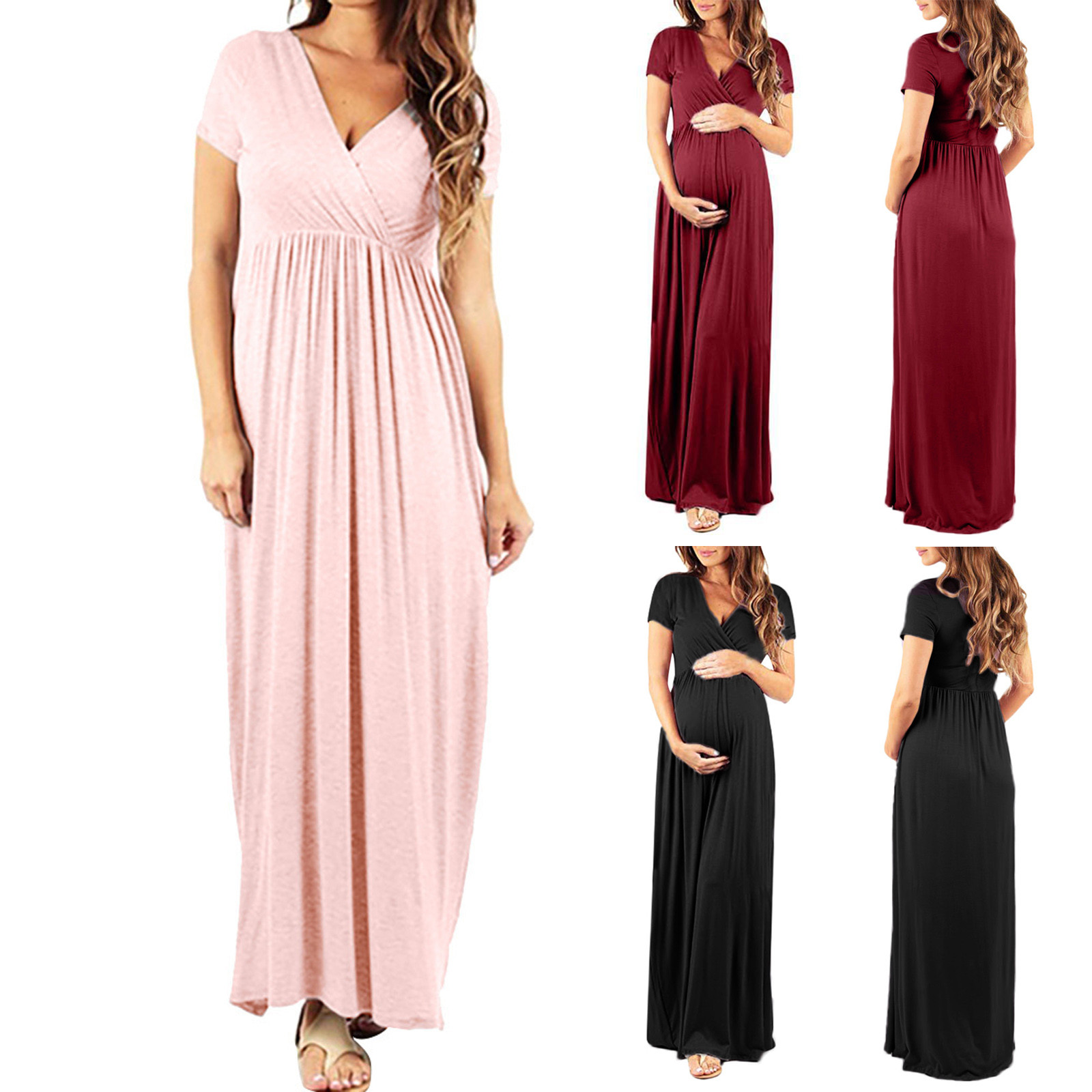Женское длинное эластичное платье с v-образным вырезом и коротким рукавом для беременных