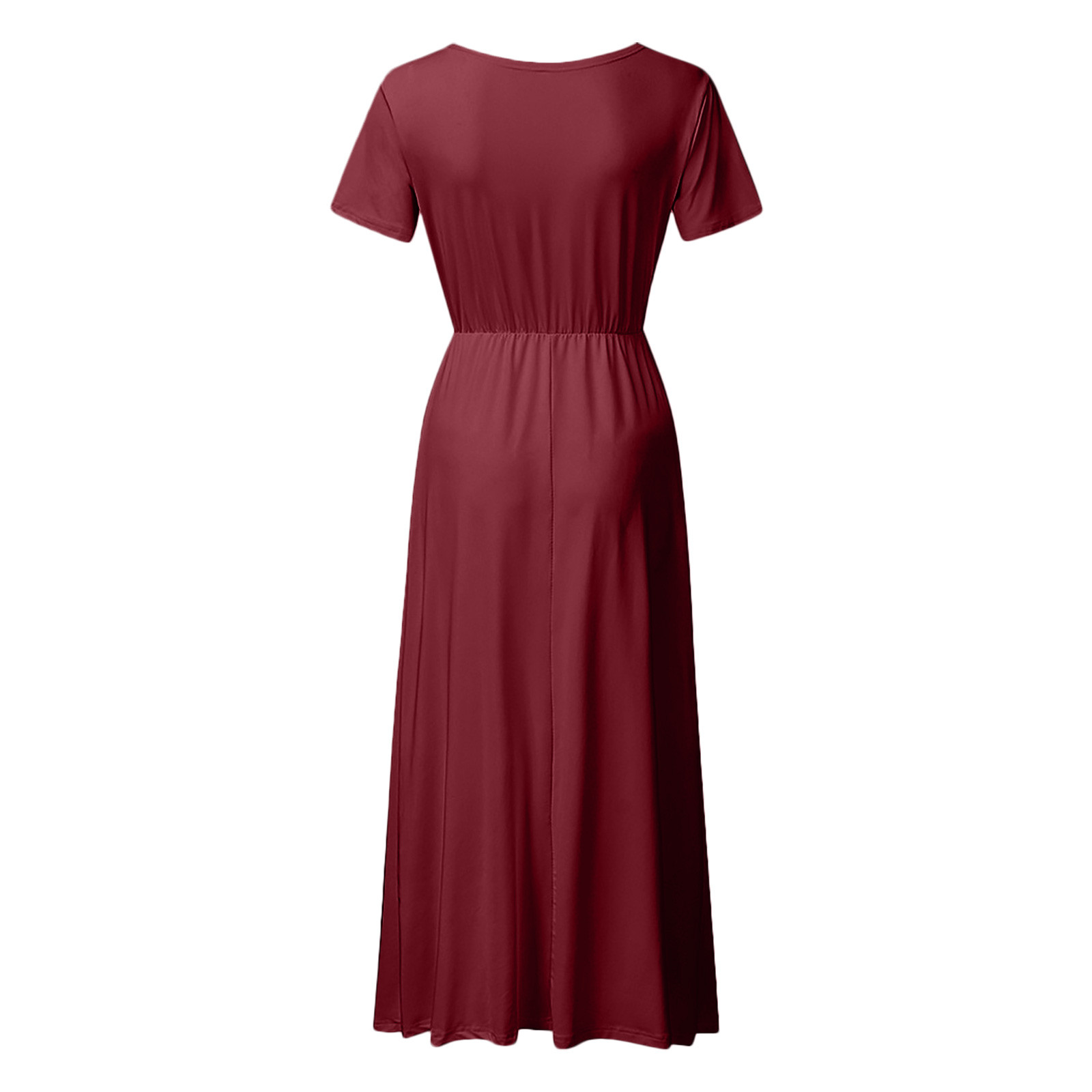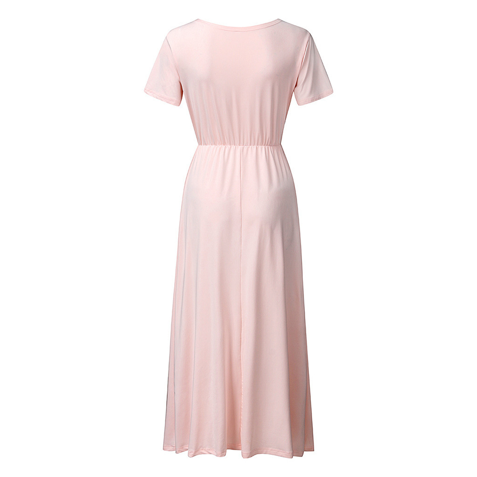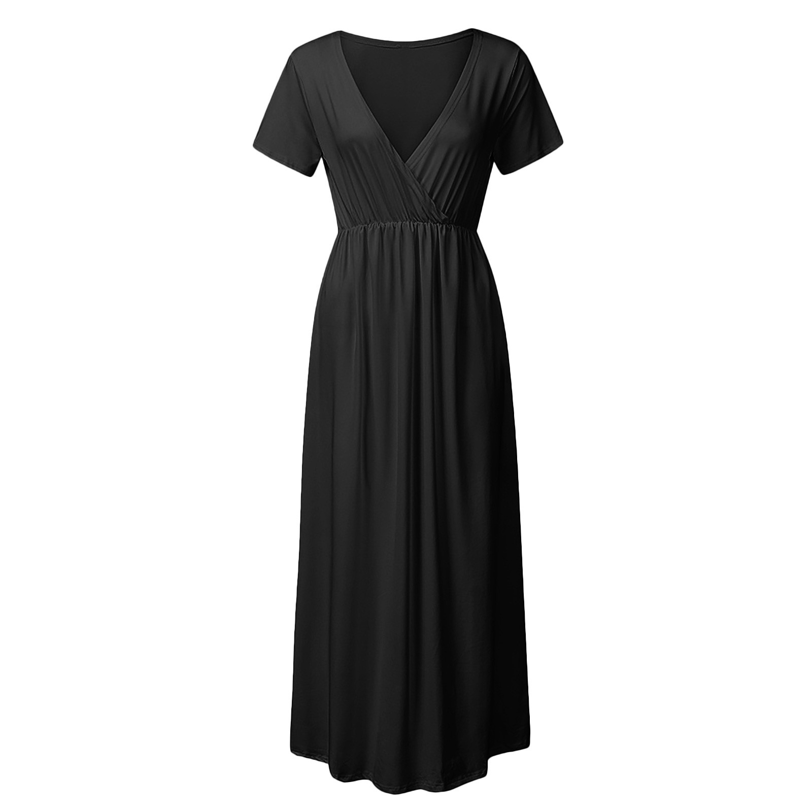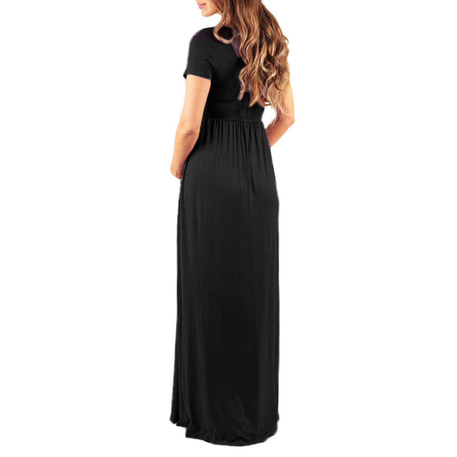 Женское длинное эластичное платье с v-образным вырезом и коротким рукавом для беременных