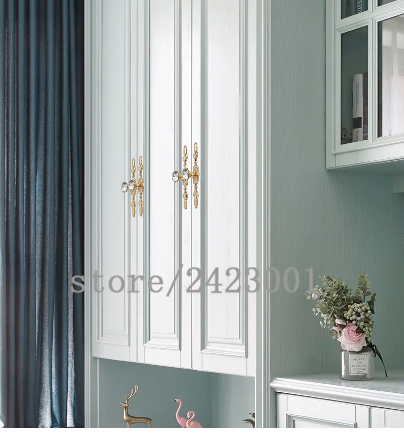 Роскошные двери шкафа золотые чешские хрустальные ручки и ручки Мебель Шкаф выдвижные ручки Z-1834
