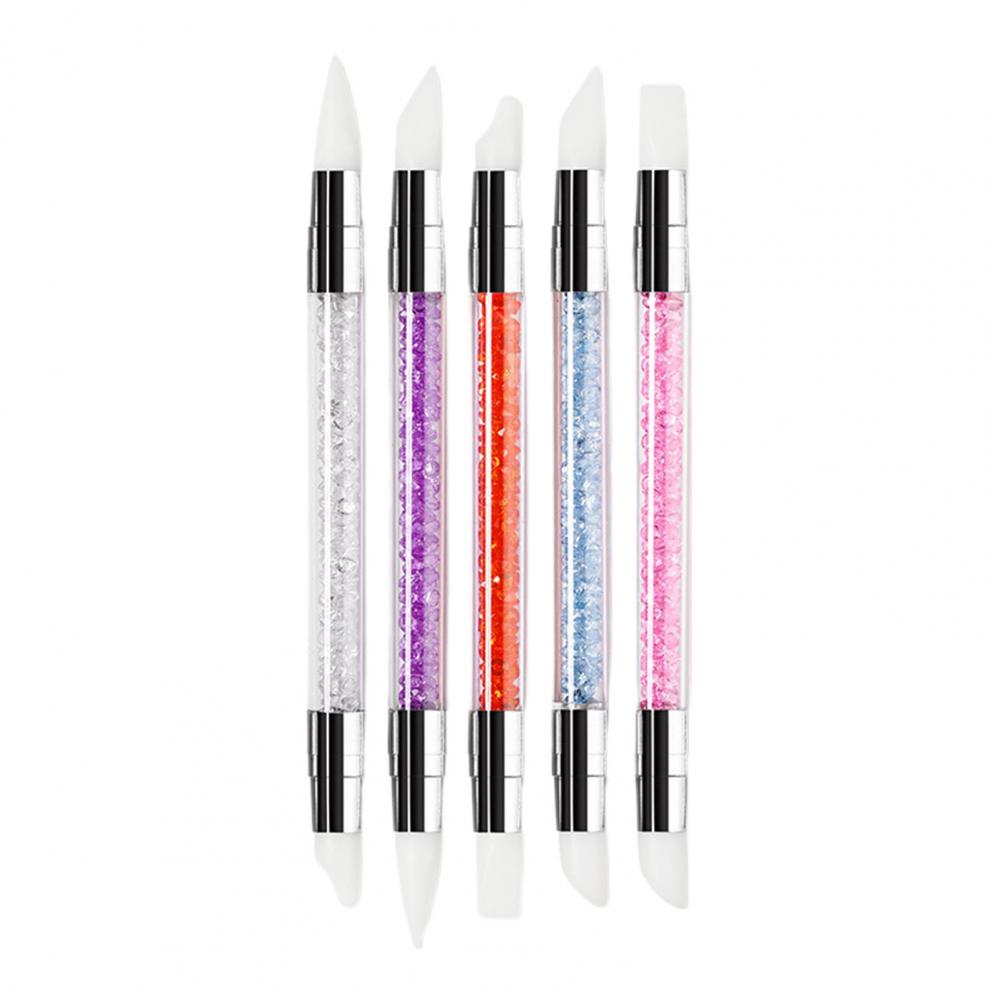 5 шт./компл. ручка для ногтей удобная Многофункциональная Мягкая силиконовая двойная ручка для маникюра с тиснением для салона