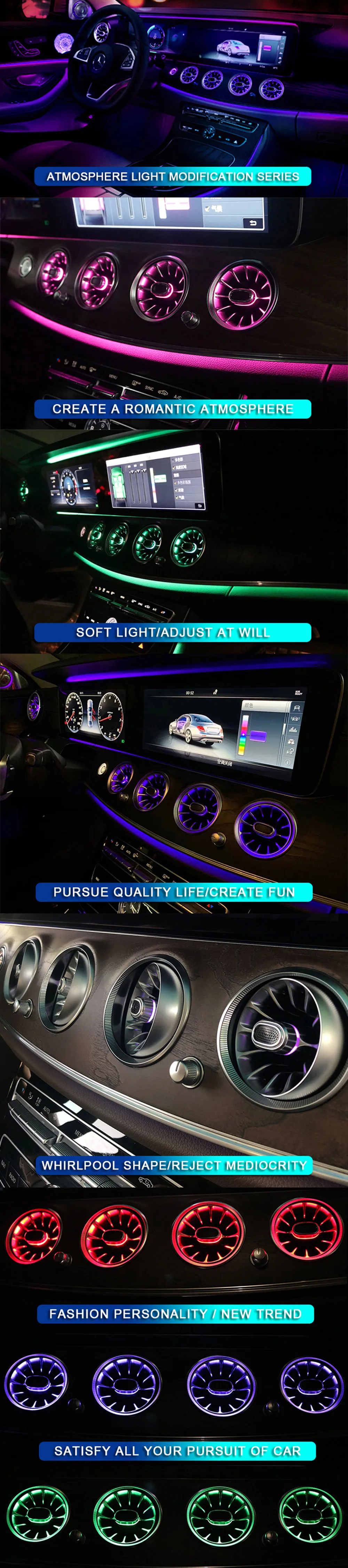 Здравствуйте, дорогой друг, пожалуйста, будьте уверены, что ваш автомобиль будет оснащен окружающим светильник, или вы не можете установить вентиляционное отверстие, вам нужно купить вентиляционное отверстие для управления приложением, пожалуйста, свяжитесь с нами, чтобы получить ссылку