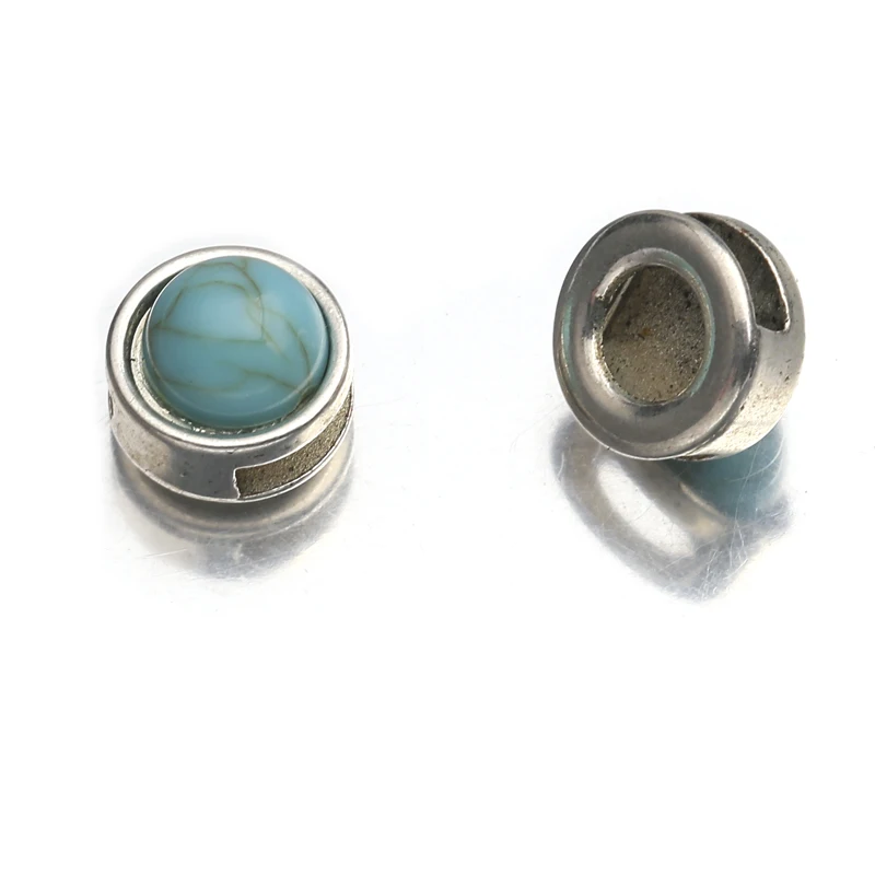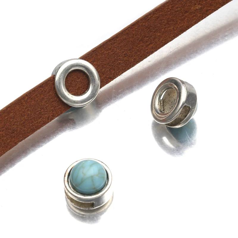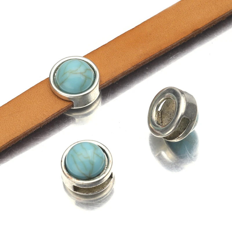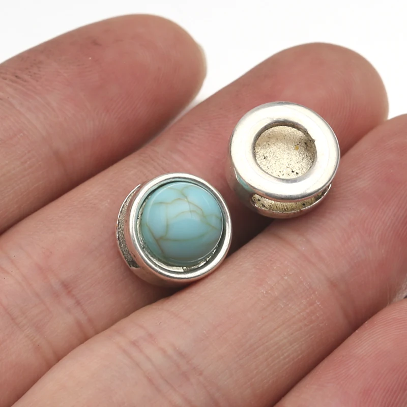 10 шт./лот тибетские серебряные круглые бирюзовые бусины-Слайдеры для плоского кожаного шнура Браслеты DIY ювелирные изделия принадлежности