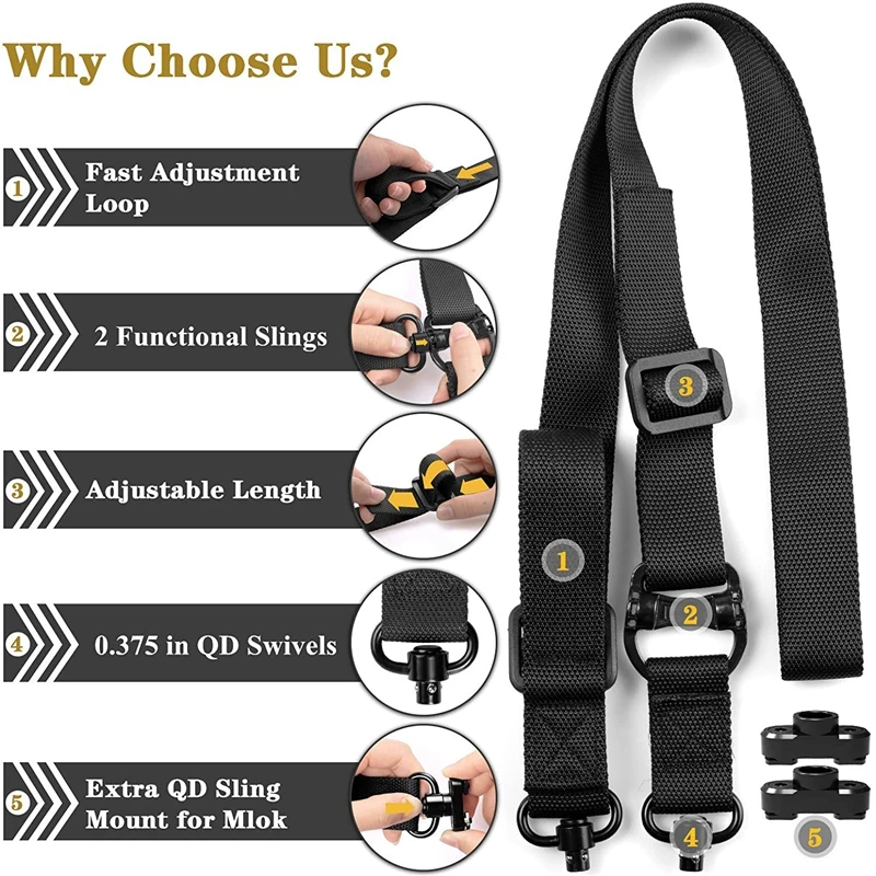 3. Каждый конец с быстроразъемным слингом с кнопкой qd sling swivel, конструкция кнопки QD для быстрого отсоединения и крепления на qd sling mounts или qd socket одной рукой.