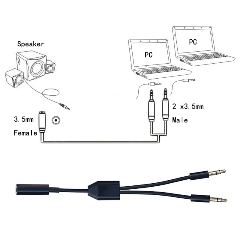 Adaptor Cord Cable for PC Computer Speakers 3.5 One Female and 2 Public Audio Source Sharing