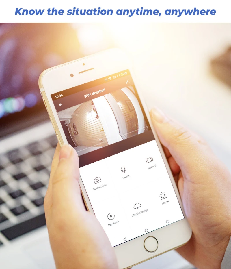 3. Когда кто-то бродит по двери, он поддерживает предупреждение о движении PIR для push-уведомлений на мобильный телефон.