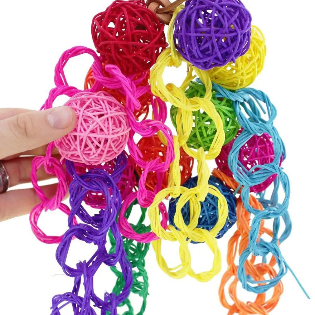 Особенности: 1. Хорошее качество: сильный, яркий и простой. Они не заставляют ваших птиц чувствовать себя перегруженными. Цвет, дерево, шарики из ротанга, бусины и колокольчики-все это интересно. 2. Безопасное жевание: птицам важно постоянно что-то жевать. В дикой природе они занимаются пирсингом и разрывом ветвей. 3. Многоцелевой: они предназначены для того, чтобы сделать вашу птицу счастливой, а также предоставляют возможности вашей птице оставаться здоровой и здоровой. Описание: Высококачественные материалы, Безопасность и защита окружающей среды, нетоксичные, безвкусные, красочные, позволяют вашим птицам хорошо провести время. Характеристики: Материал: ротанговый шарик из воловьей кожи Цвет: разноцветный Размер: 13*32 см Посылка включает в себя: 1 * игрушка попугая