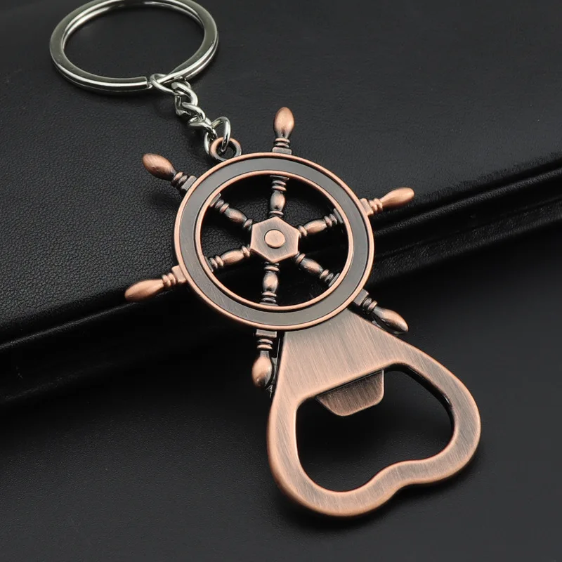 Портативный открывалка для бутылок, брелок Морской в форме руля, металлический медный брелок для ключей, барный инструмент, вечерние, креативный подарок, открывалка для пивной стеклянной крышки