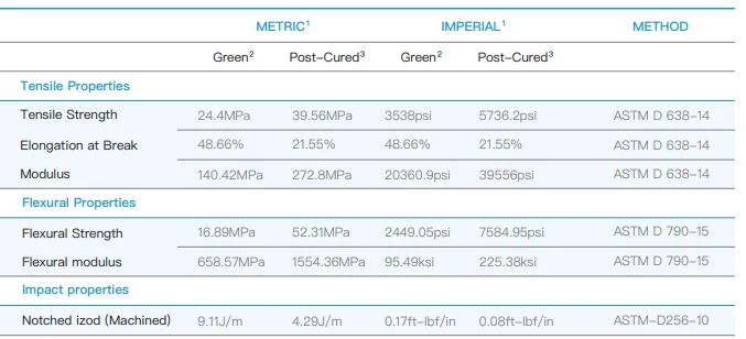 1. Свойства материала могут отличаться в зависимости от геометрии детали, ориентации печати, настроек печати и температуры.