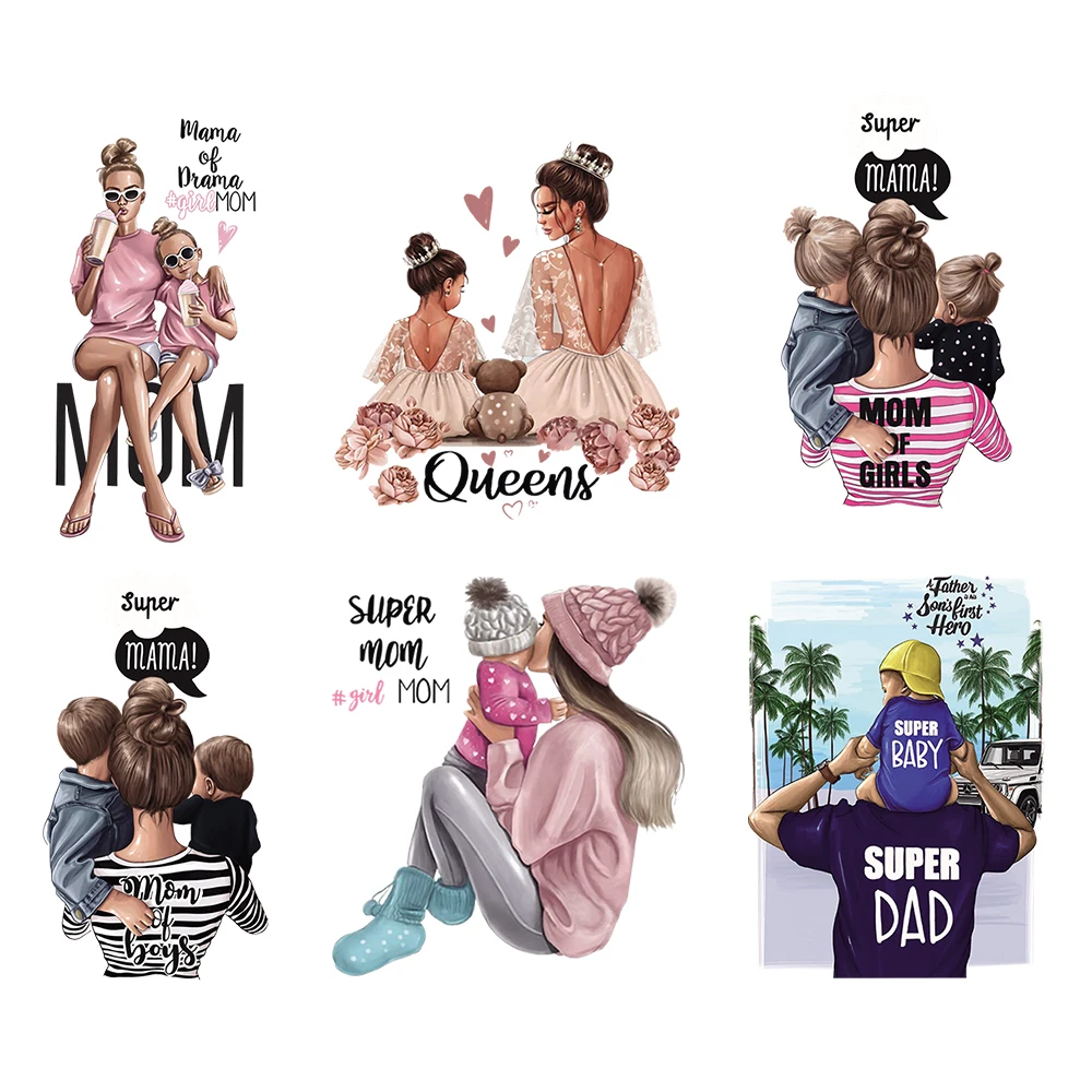 Сделай Сам, пластыри с теплопередачей для мамы и дочки, для мальчиков и девочек, напечатанные нашивки на одежду, наклейки на футболки, платья, сумки