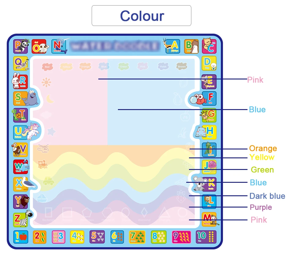 No ink, No paint, Non-toxic, Non-polluting. Never make a mess. The back of the mat is water-resistant nylon material,clean and safety for kids. The traces will never be chaotic, satisfying the imagination and creativity of the kids' infinite painting.