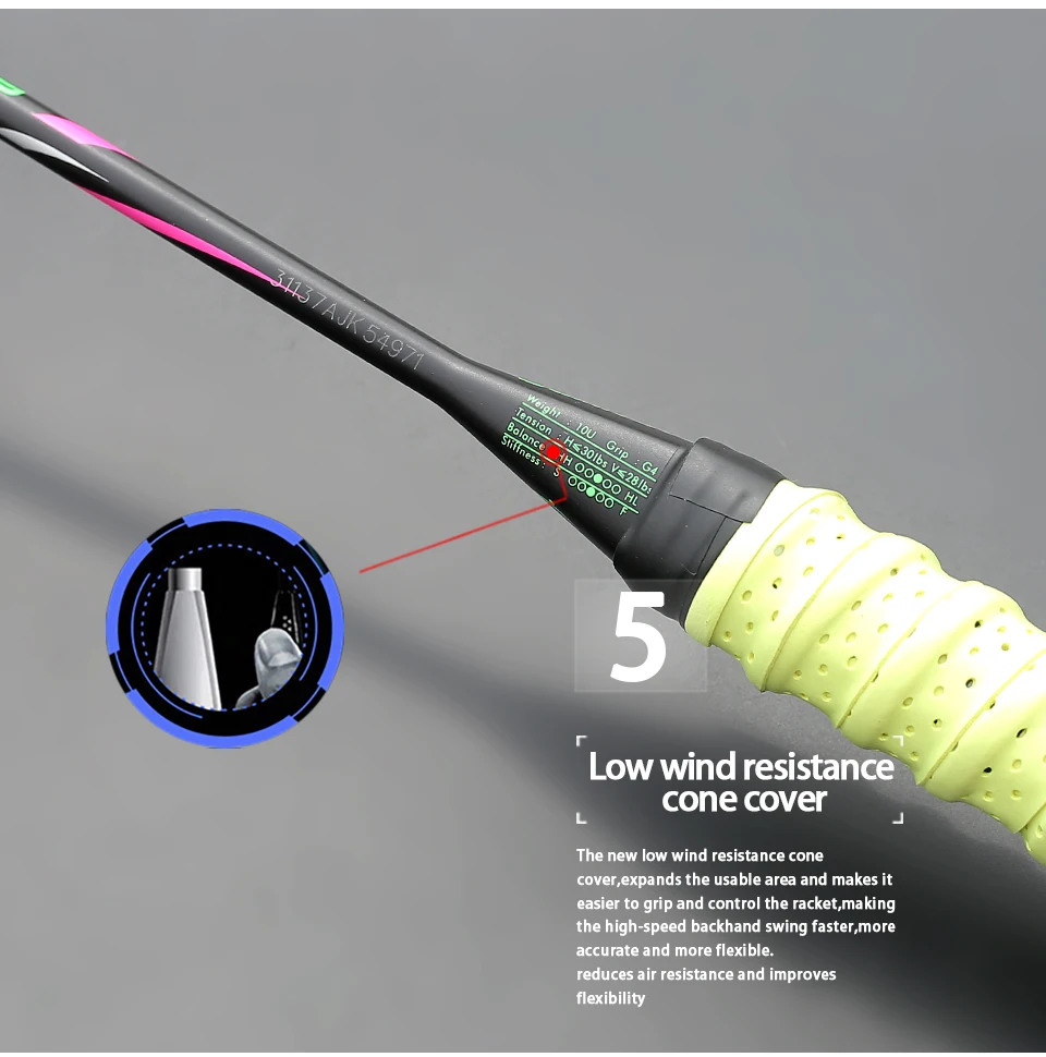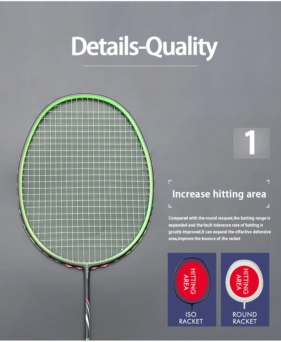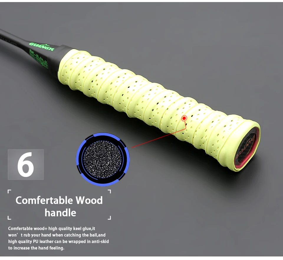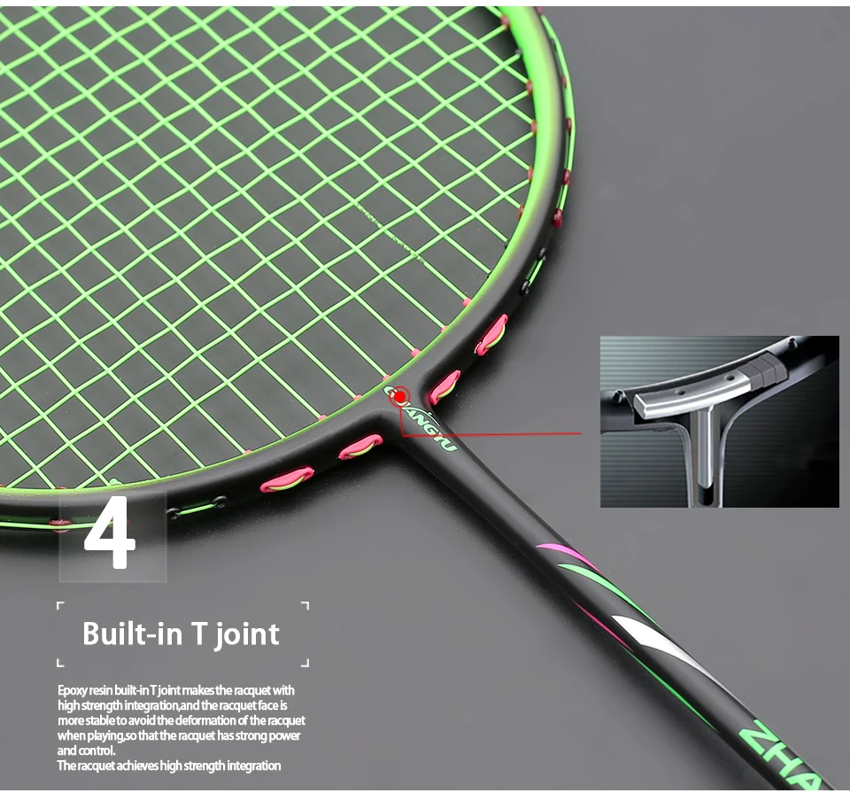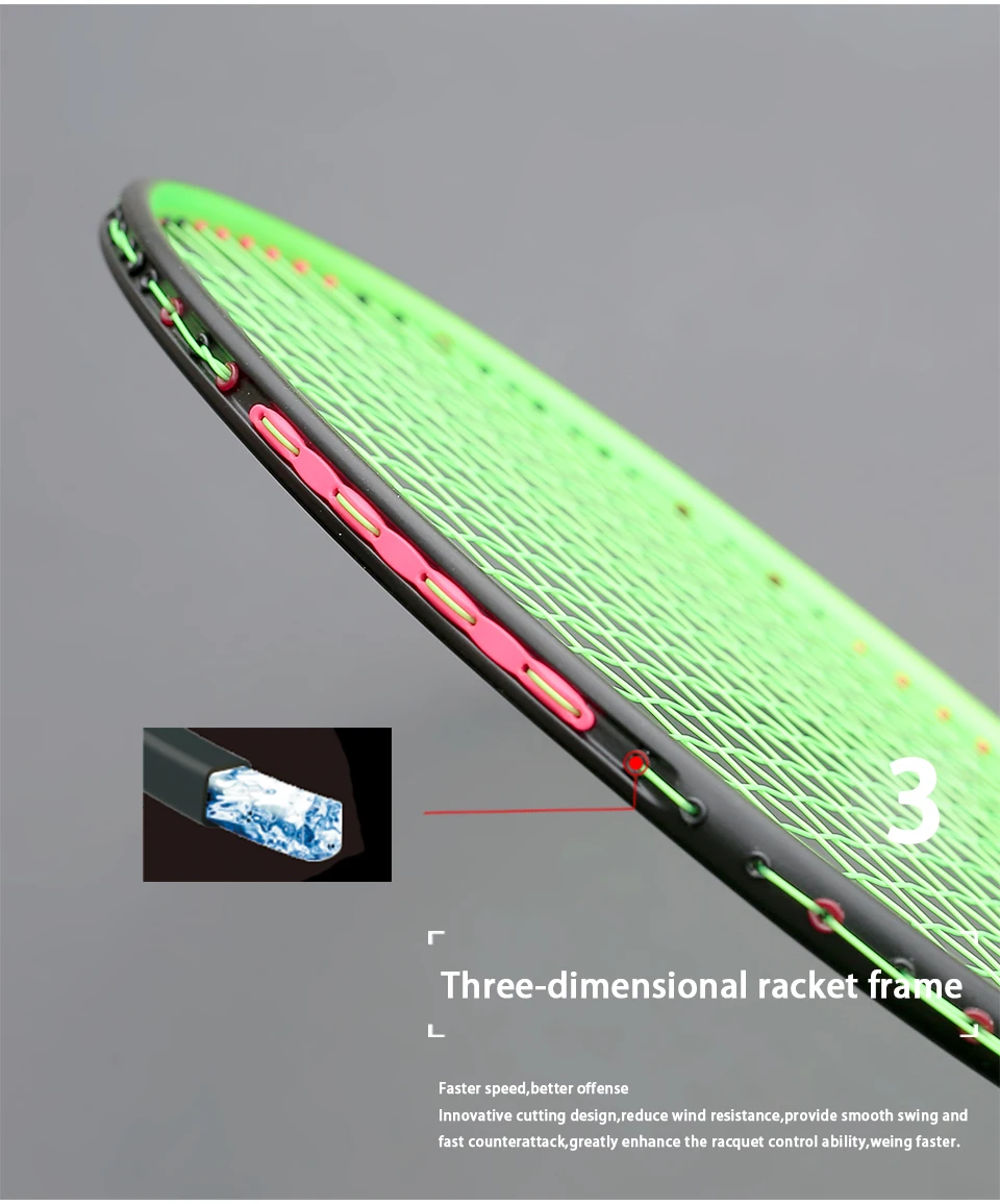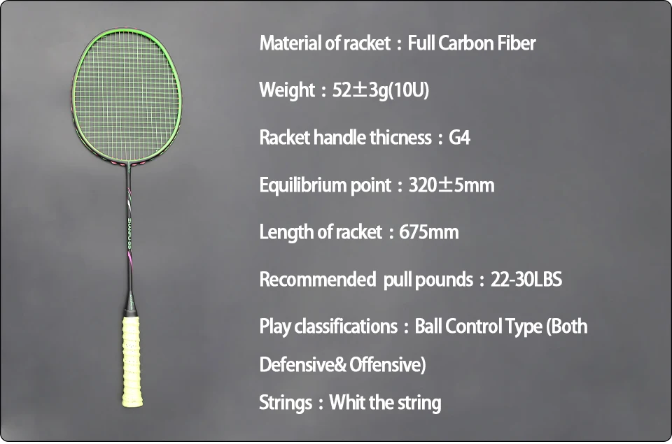 Вес-10U вес нетто всего 52-55 г без шнура и накладки и пластиковой пленки, любой может контролировать ракетку без усилий;Углеродное волокно-он ракетка более легкая, но более сильная, поэтому напряжение может достигать 30 фунтов, подходит для начинающих и профессионального игрока;Баланс ракетки-ракетки имеет лучший баланс веса и мощности, поэтому ракетка может легко сломать силу и сделать наступление не может быть остановлен.Бесплатное обслуживание-мы можем предложить бесплатное обслуживание струны и накладки, так что вы можете играть сразу же, когда вы получите ракетку.Подарок:1-бесплатное обслуживание струн с помощью цифровой струнной машины;2- 1 шт. Удобная цветная накладка;3-1 шт. сумка для переноски