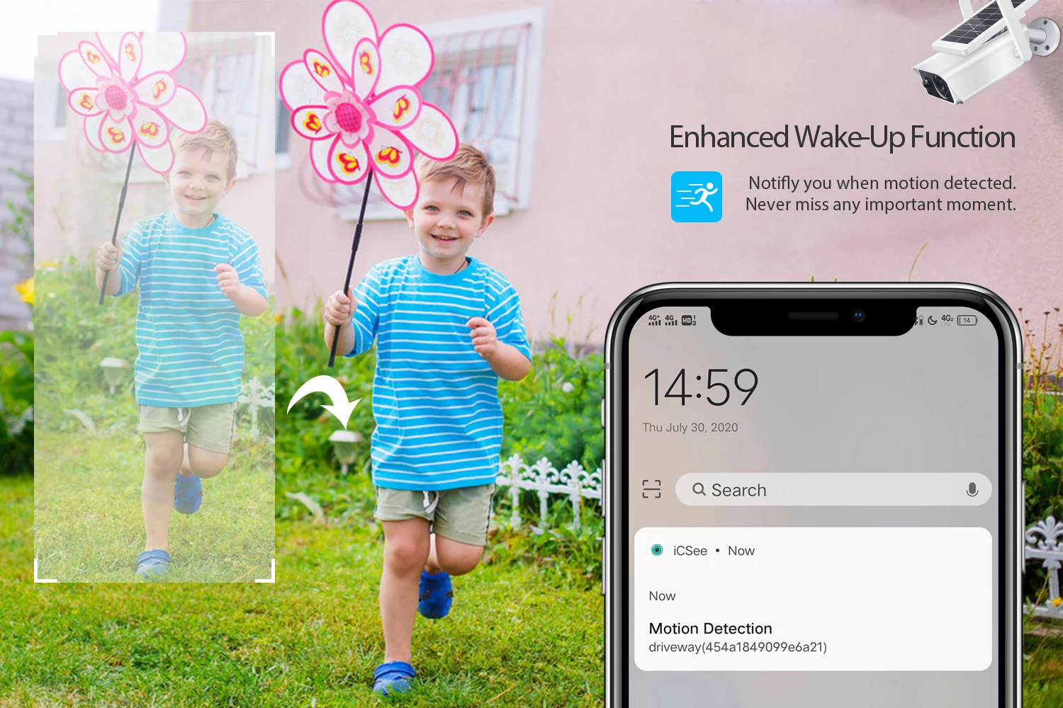 Когда срабатывают датчики движения солнечной камеры BESDER, вы получаете мгновенное Оповещение на свой телефон всего за 2 секунды и сможете видеть, что происходит.
