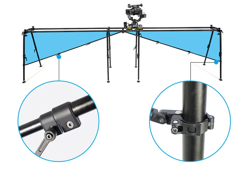70 кг нагрузка-подшипник | 2,4 м Сращивание трек | 4 × 4 роликовых коньков railcar | Выдвижная Высокая нога | Мульти-Калибр чаша-рот gimbal seat | Наклонная Скоба стабилизация