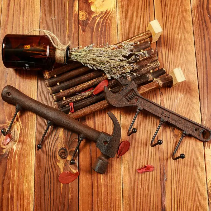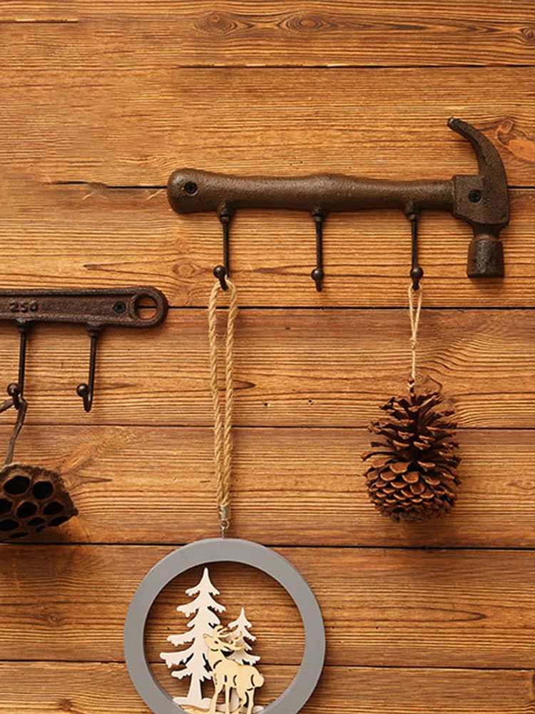 1 шт., винтажный настенный крючок, вешалка для ключей, вешалка для одежды, настенный держатель для пальто, 3 крючка, металлический крючок в форме молотка для домашней спальни