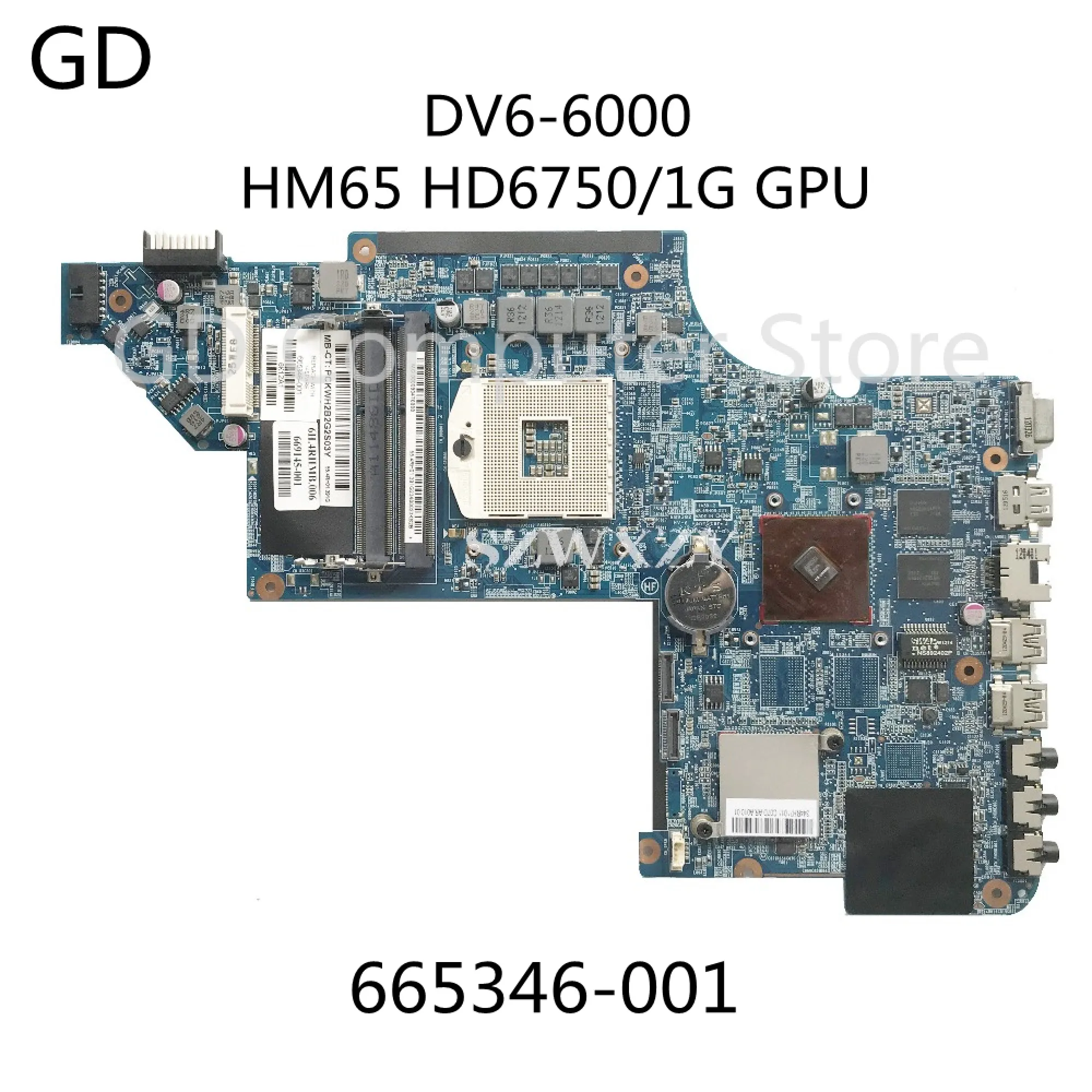 GD для Hp Pavilion DV6-6000 оригинальная материнская плата для ноутбука 665346-001 с HM65 HD6750/1G GPU DDR3 Полная проверка Быстрая доставка