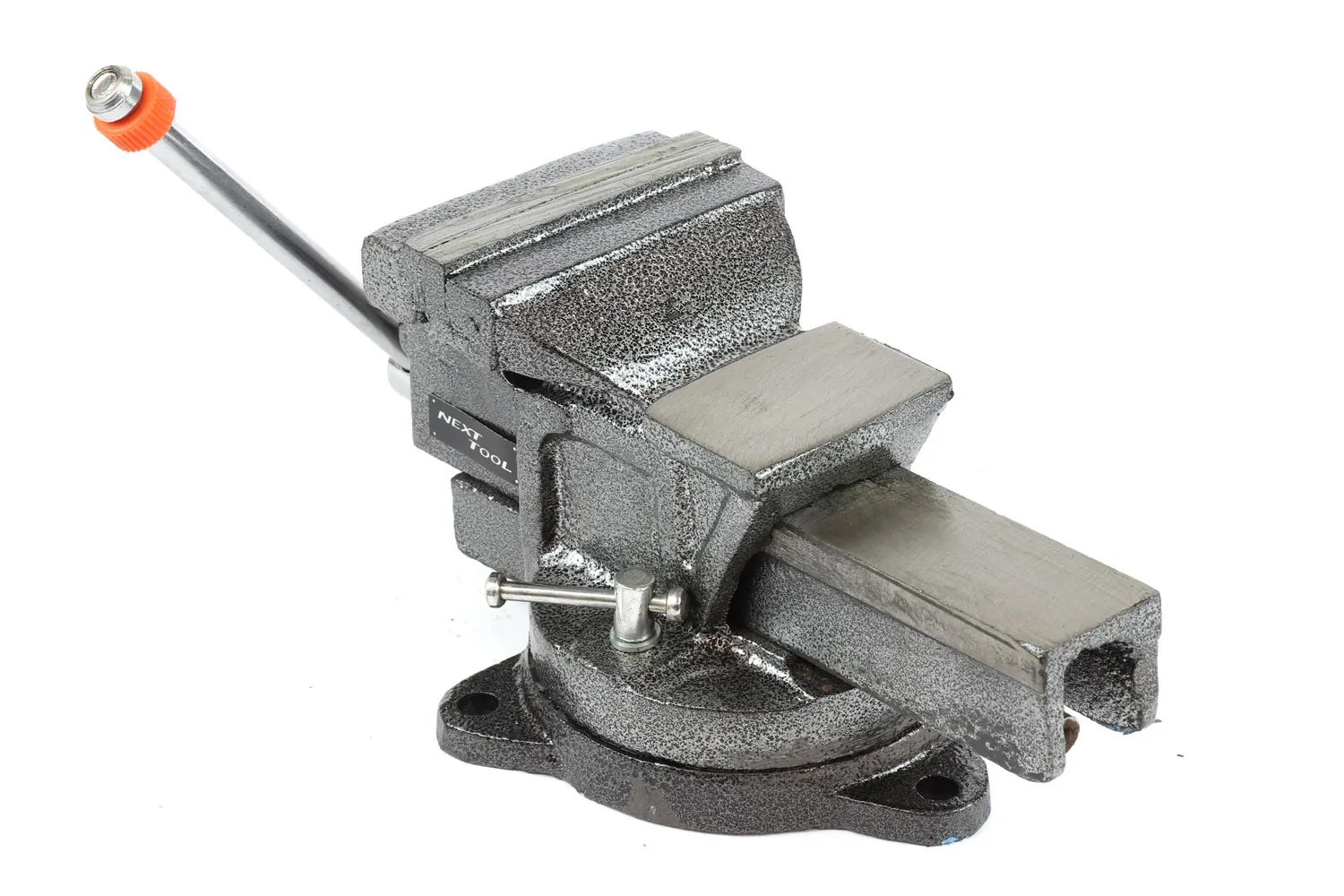 Тиски поворотные слесарные NEXTTOOL ТСП-100с наковальней предназначены для фиксации ручным усилием между подвижной и неподвижной губками различных заготовок для их дальнейшей обработки.