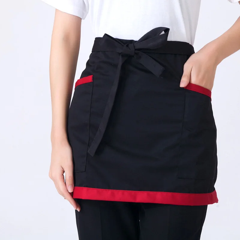 -Совершенно новый и высококачественный кухонный фартук для готовки на талии, короткий фартук, фартук официанта с двойными карманами.