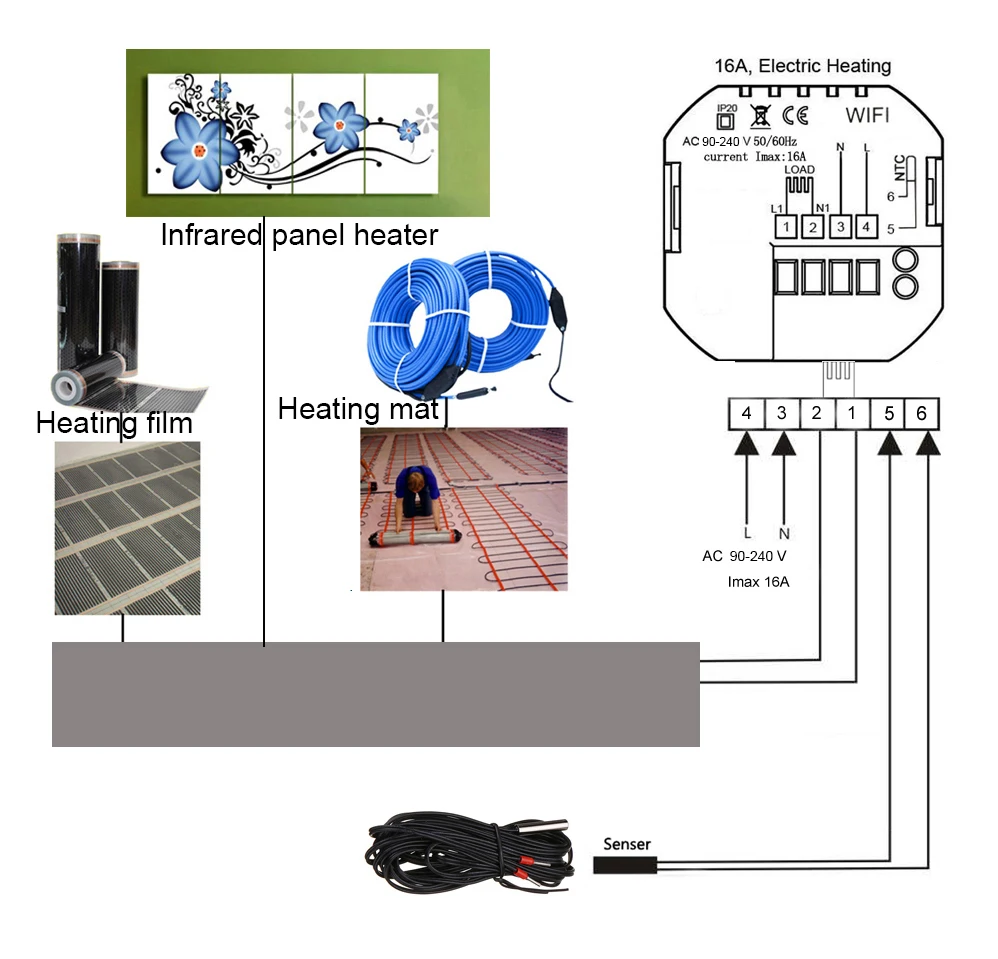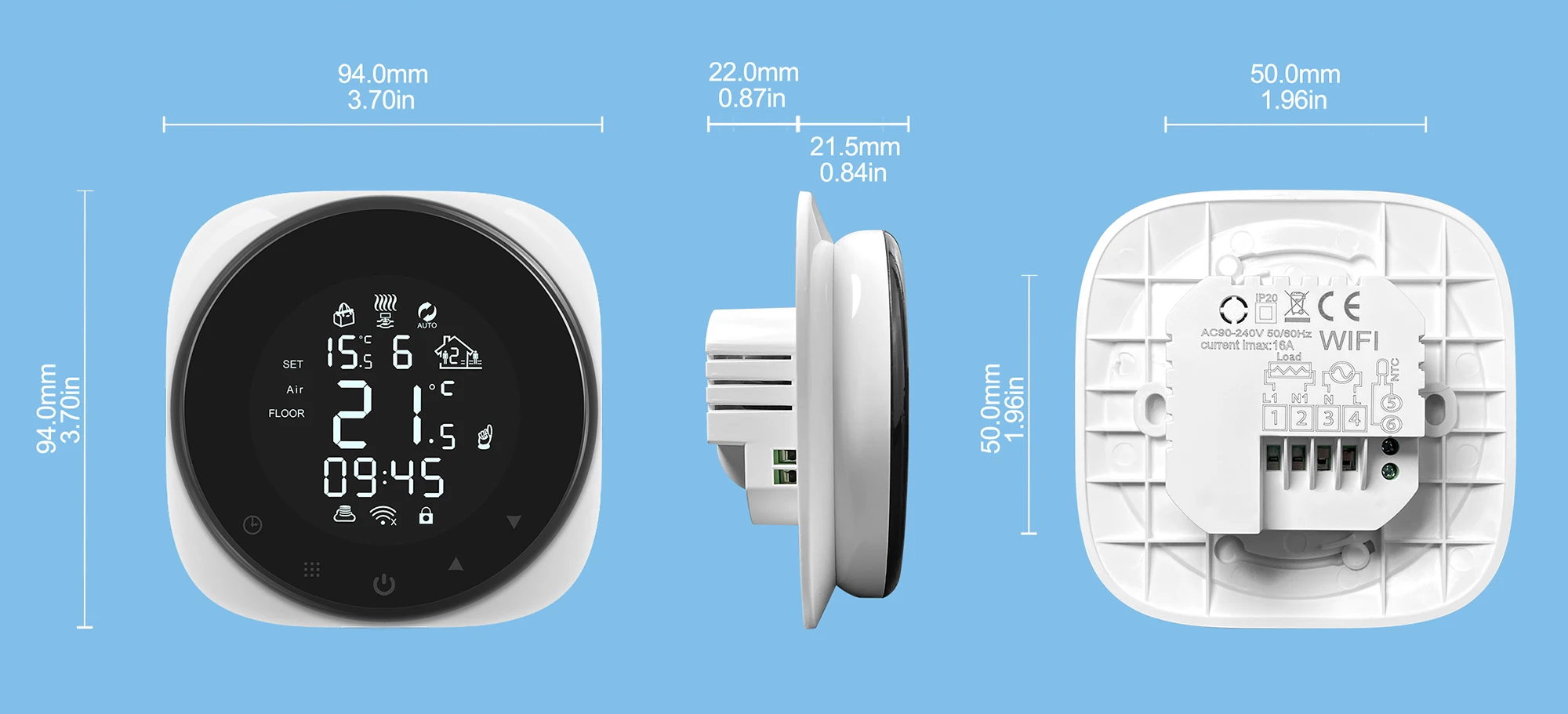 16A электрическое Напольное отоплениеТермостат используется для управления инфракрасной панелью, электрическим нагревателем, электрическим подполомОтопление (нагревательный коврик, нагревательные пленки, нагревательная проводка и т. д.), электрическое потолочное отопление и т. д. и вы можете использовать его для установки комфортной комнатной температуры и экономии энергии.