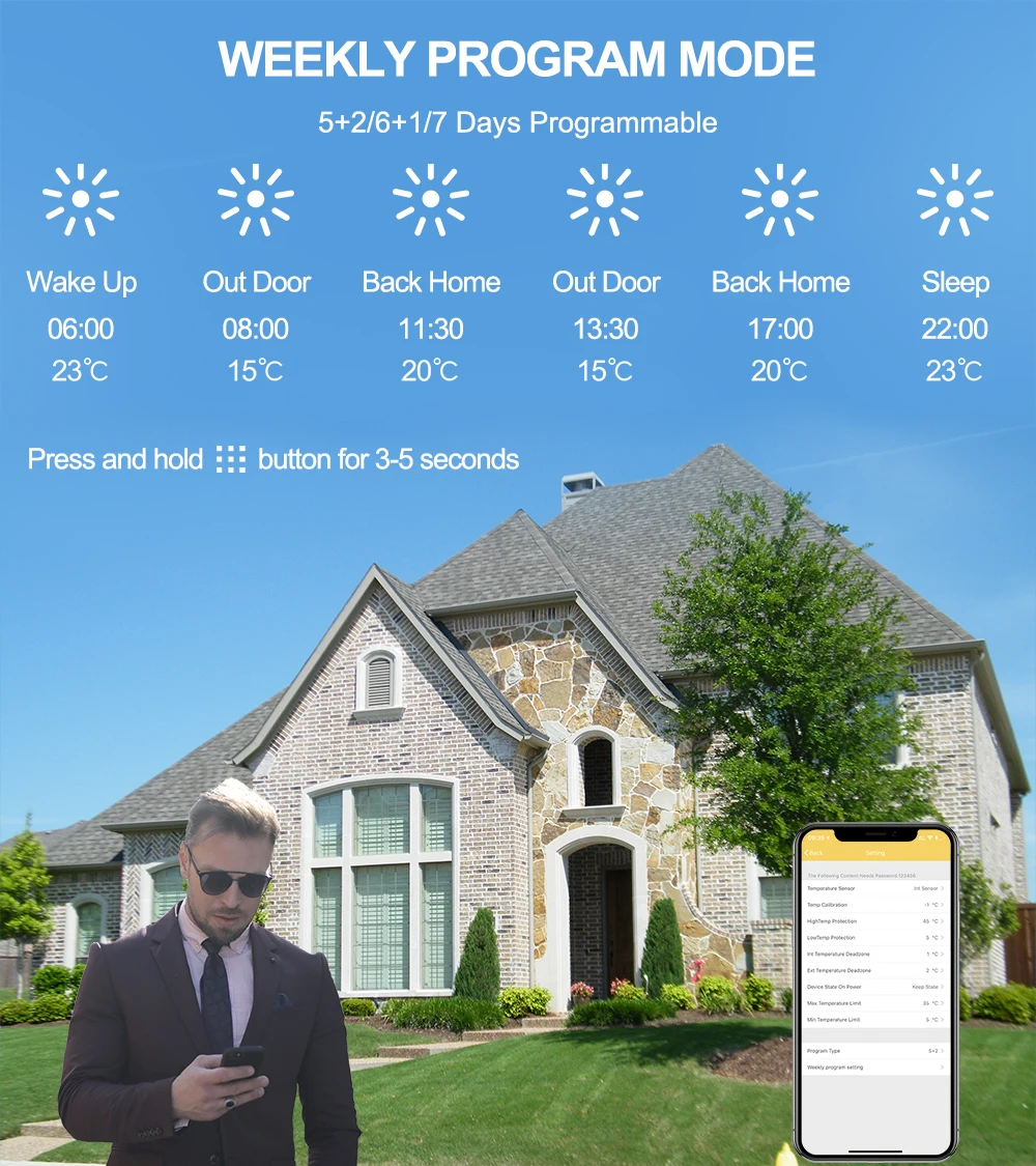 3а водонагревание и газовое котельное ОтоплениеТермостат используется для управления газовым котлом и водяным подогревом пола (например, тепловым приводом). Моторизованный клапан и т. д.Вы можете использовать его для установки комфортной комнатной температуры и экономии энергии.