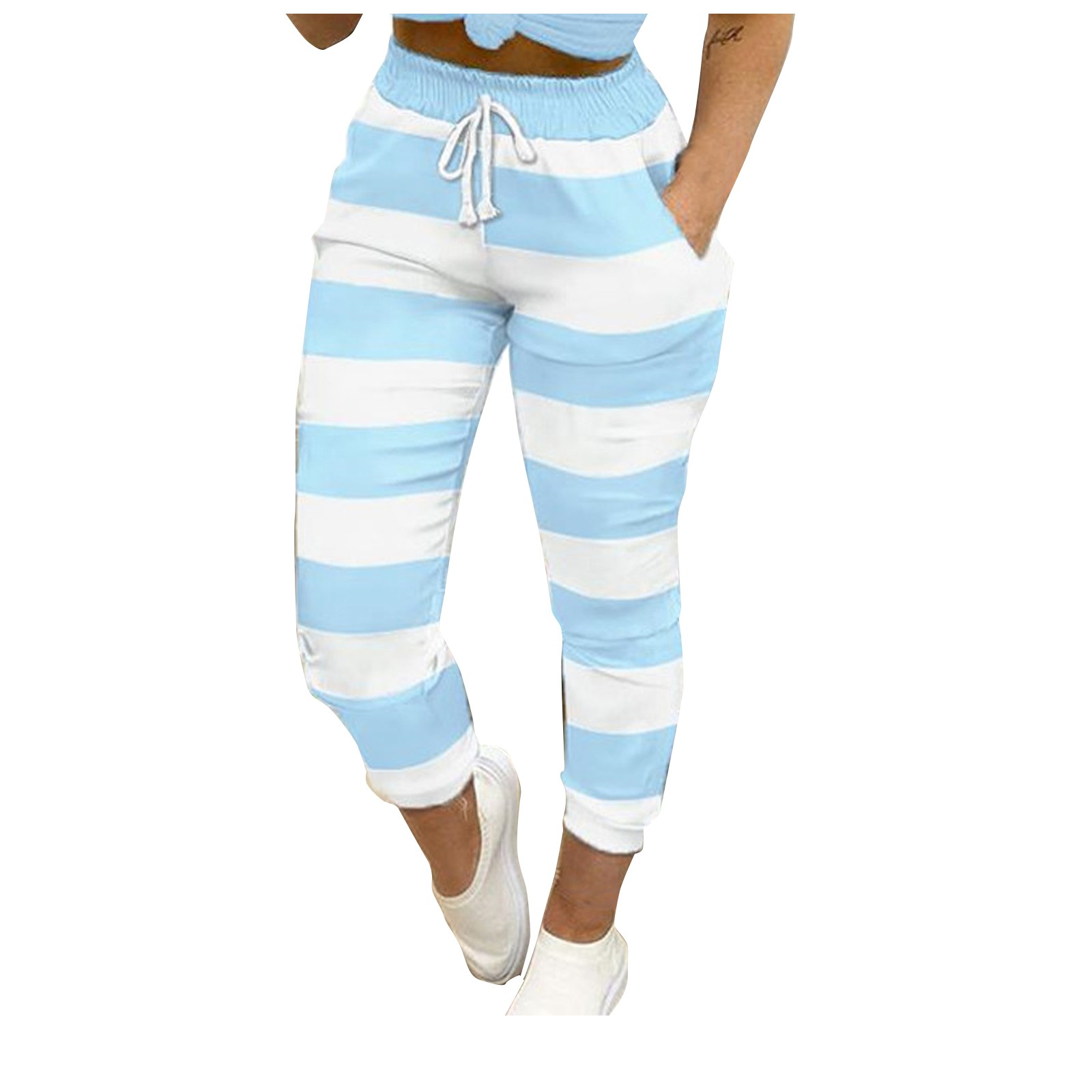 Женские повседневные эластичные полосатые расклешенные с широкими штанинами брюки