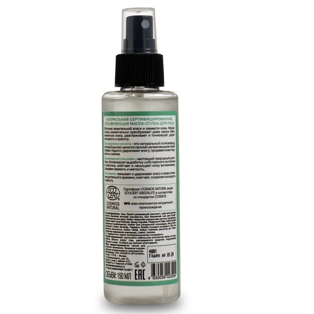 ОРГАНИЧЕСКАЯ СЕРТИФИЦИРОВАННАЯ УВЛАЖНЯЮЩАЯ МАСКА -СПЛЕШ ДЛЯ ЛИЦА