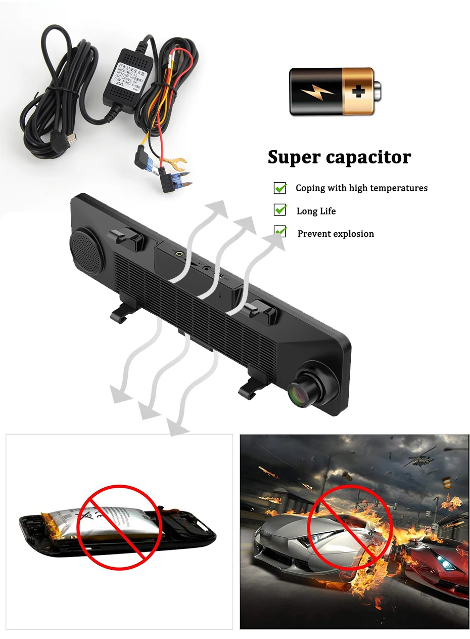 With a battery-free design, this dash camera is directly connected to the car battery ACC, and also supports low-voltage protection for your vehicle, then you could 24 hours monitor your car no matter where you are.