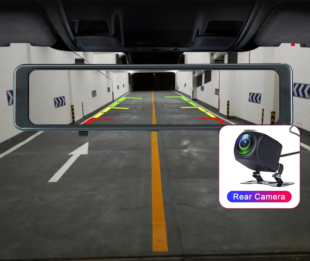 When the car in Reverse Gear, this car DVR will automatically switch to the back-up camera image view with parking line