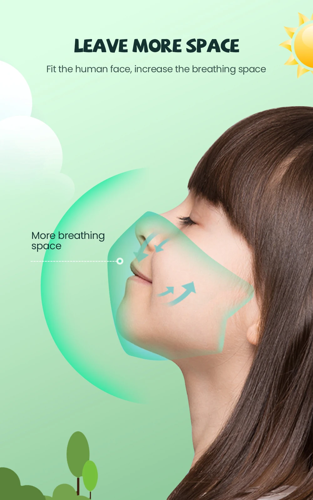 <Дышащий: регулируемые зажимы для носа обеспечивают плотное уплотнение.