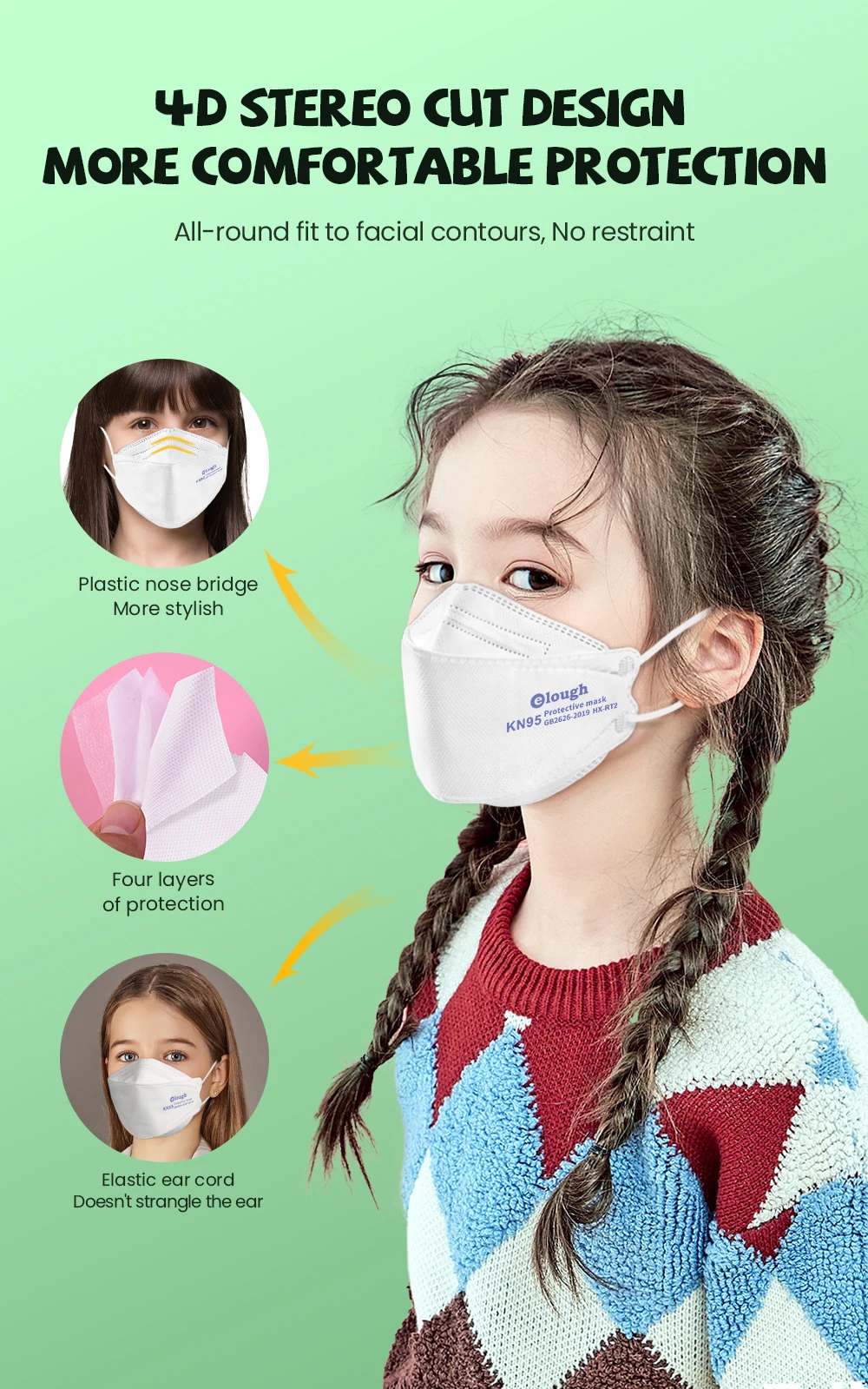 Примечание: маска напечатана «FFP2 NR EN 149:2001 + A1:2009 CE 2163» для детей