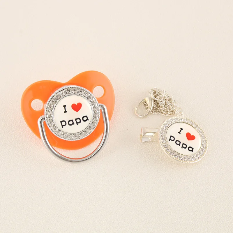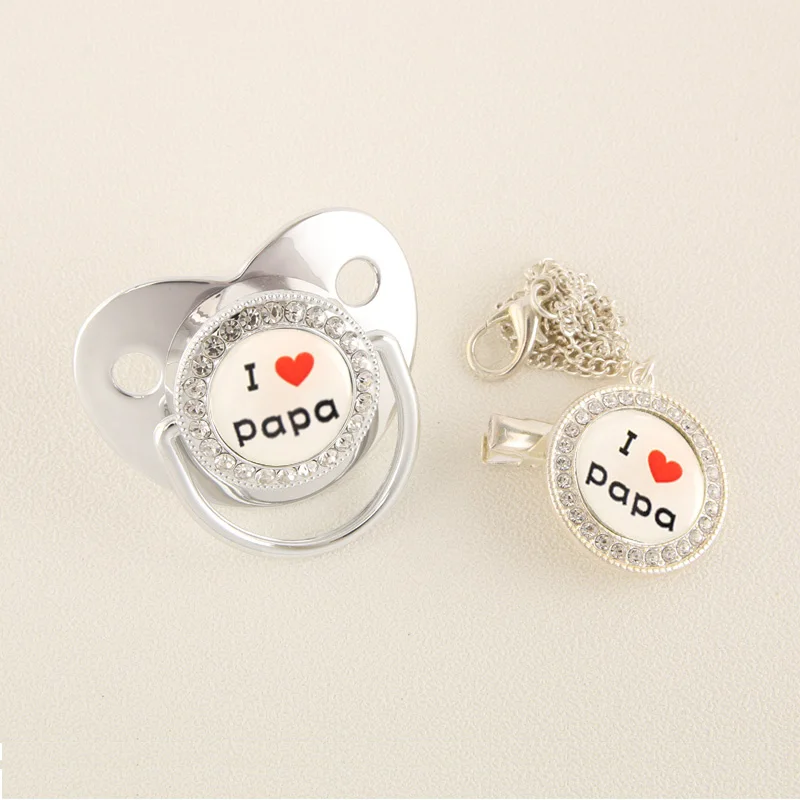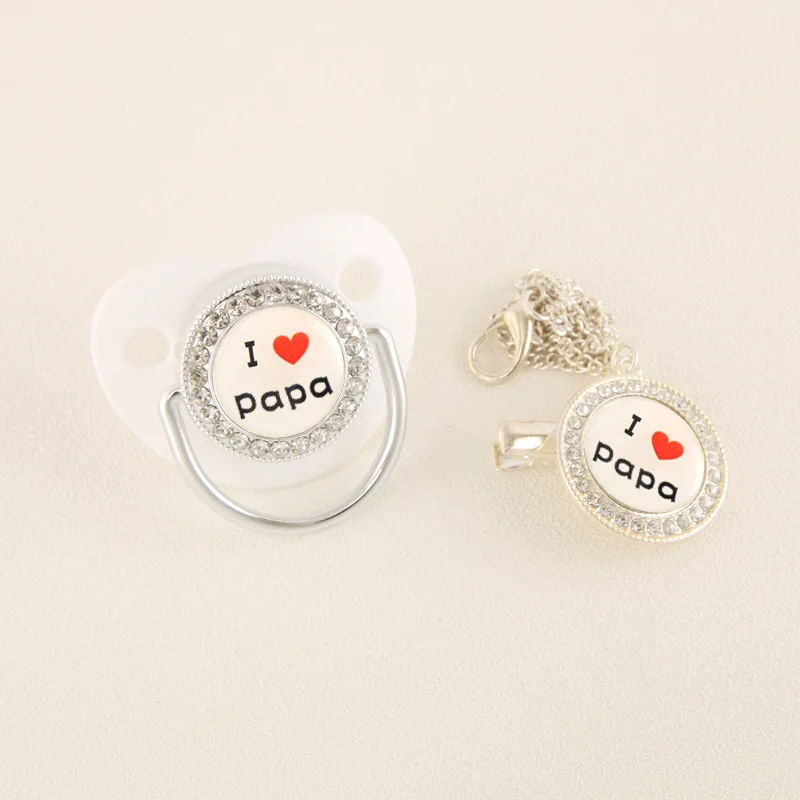 Я люблю папу побрякушки серебряные детские соски с зажимом соска для младенцев BPA бесплатно силиконовые соски-пустышки для детского душа подарок Chupeta