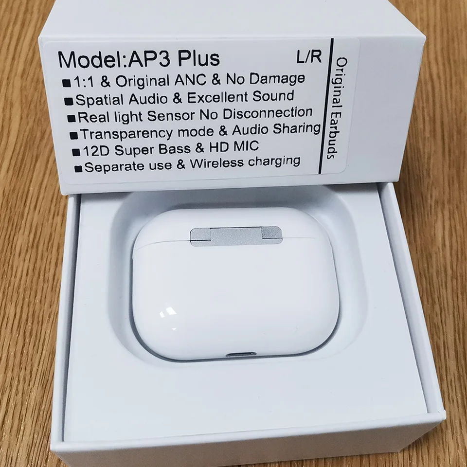Пространственное аудио Реалистичная работа(Нужно открыть DolbyAudio)Крышка обратного магнита (при закрытии крышки светодиодный светильник мигнет 3-5 с)Высококачественный Оригинальный чехол с текстомРежим прозрачности как оригинал (IOS и Android)15 мм Большой мощный динамик 12D Super BassТоп цифровой HD ANC микрофон clear callРеальный in-ear светильник с датчиком & Давление датчикНастоящий оригинальный звук qualityno отключает музыкуPop up Real Battery show no changingНастоящие стальные вентиляционные отверстияОбмен аудиоДругие особенности:Измените название наушниковGPS найдите наушники* Новинка * сопряжение всплывающих окон (Откройте крышку, не нужно вынимать наушники)Android смартфон Откройте крышку для поиска имени bluetooth для сопряжения!Время работы при прослушивании музыки 5-7hoursБеспроводная зарядка QIОтдельный Левый наушник и правый наушникАвтоматическое включение/выключениеПредыдущая песня/следующая песня/паузаГолосовой помощник Siri
