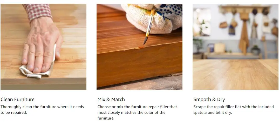 Скрывает недостатки: Восстанавливает винтажную мебель быстро и чисто. Упаковать полимерный древесный наполнитель в желаемый дефект с помощью прилагаемой щетки. Затем Разгладьте его, чтобы быть промытым с помощью предоставленного скребка, удалите излишки и дайте высохнуть.