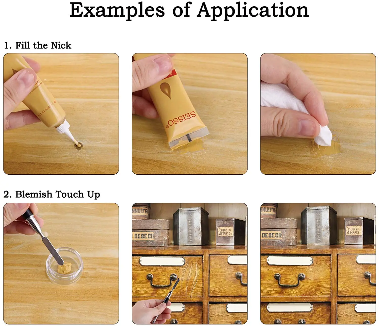 Широкое применение: не только применяется на деревянных поверхностях дома, но и идеально подходит для офиса. Наполнители с отделкой из дерева также идеально подходят для небольших хобби и проектов по дереву, а также для придания декоративных штрихов крупным моделям. Восстанавливает все виды повреждений, таких как сколы, трещины, вмятины, отверстия, следы домашних животных и скрабы.