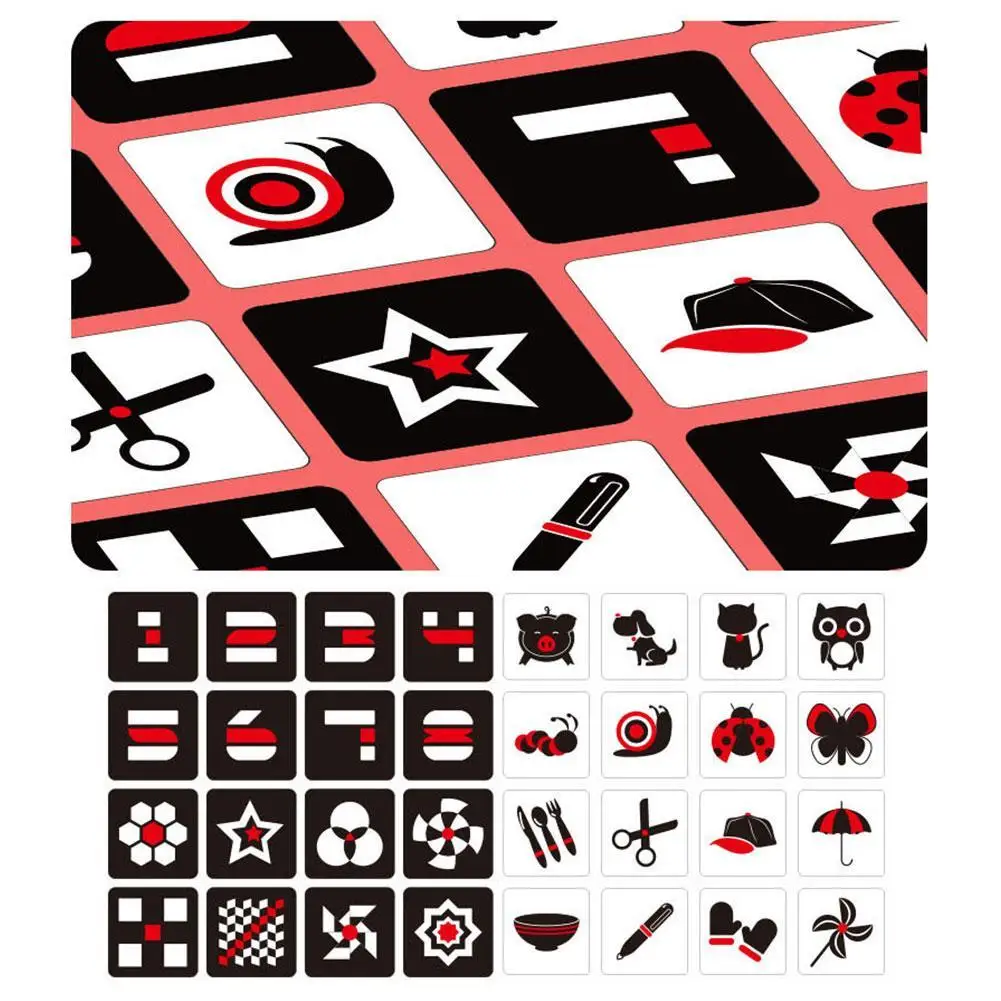Двухсторонние и большие карты сделаны из толстого кардштока и обеспечивают контрастные иллюстрации в соответствии с зрения ребенка.